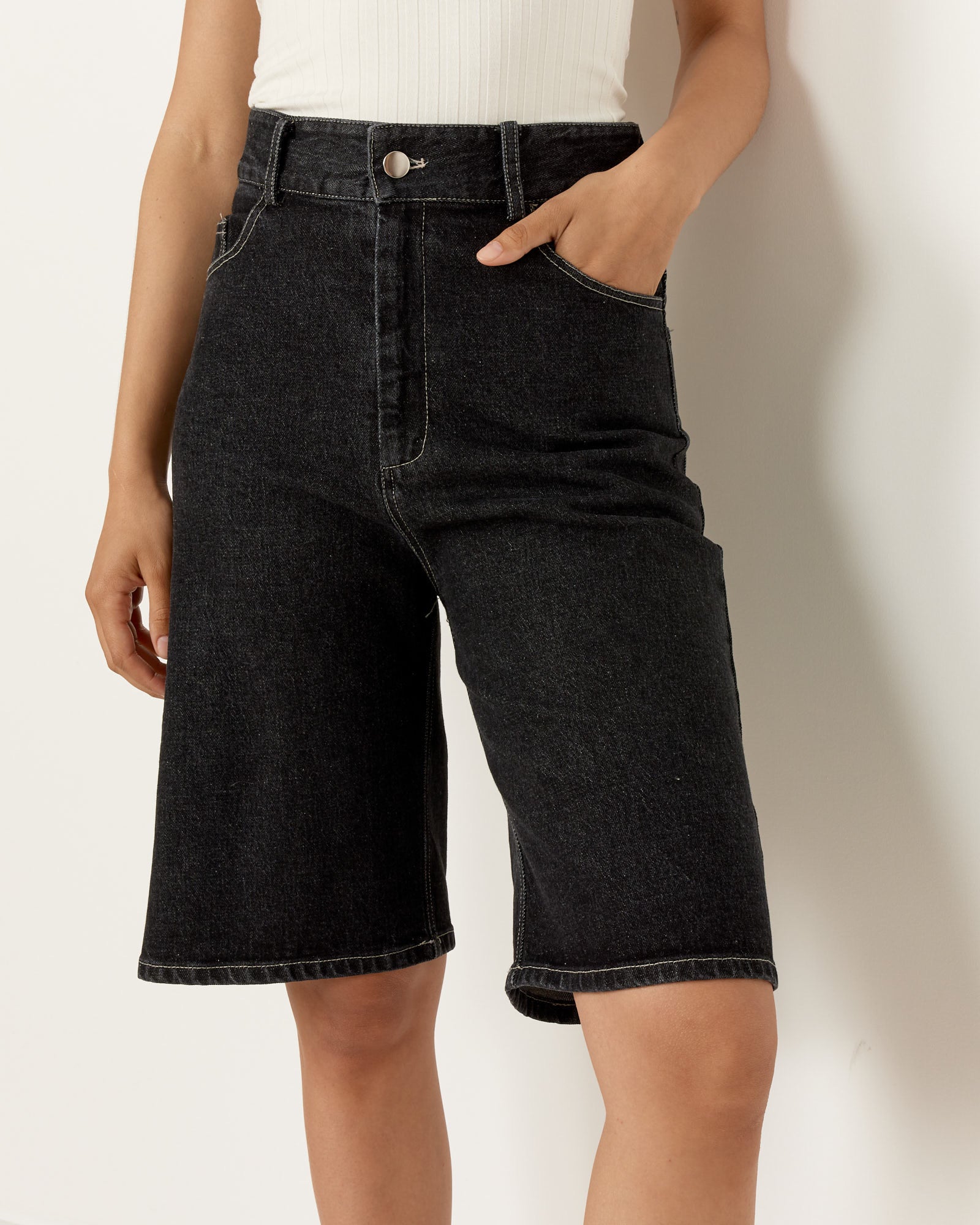 Stonewash Denim Shorts in Black
