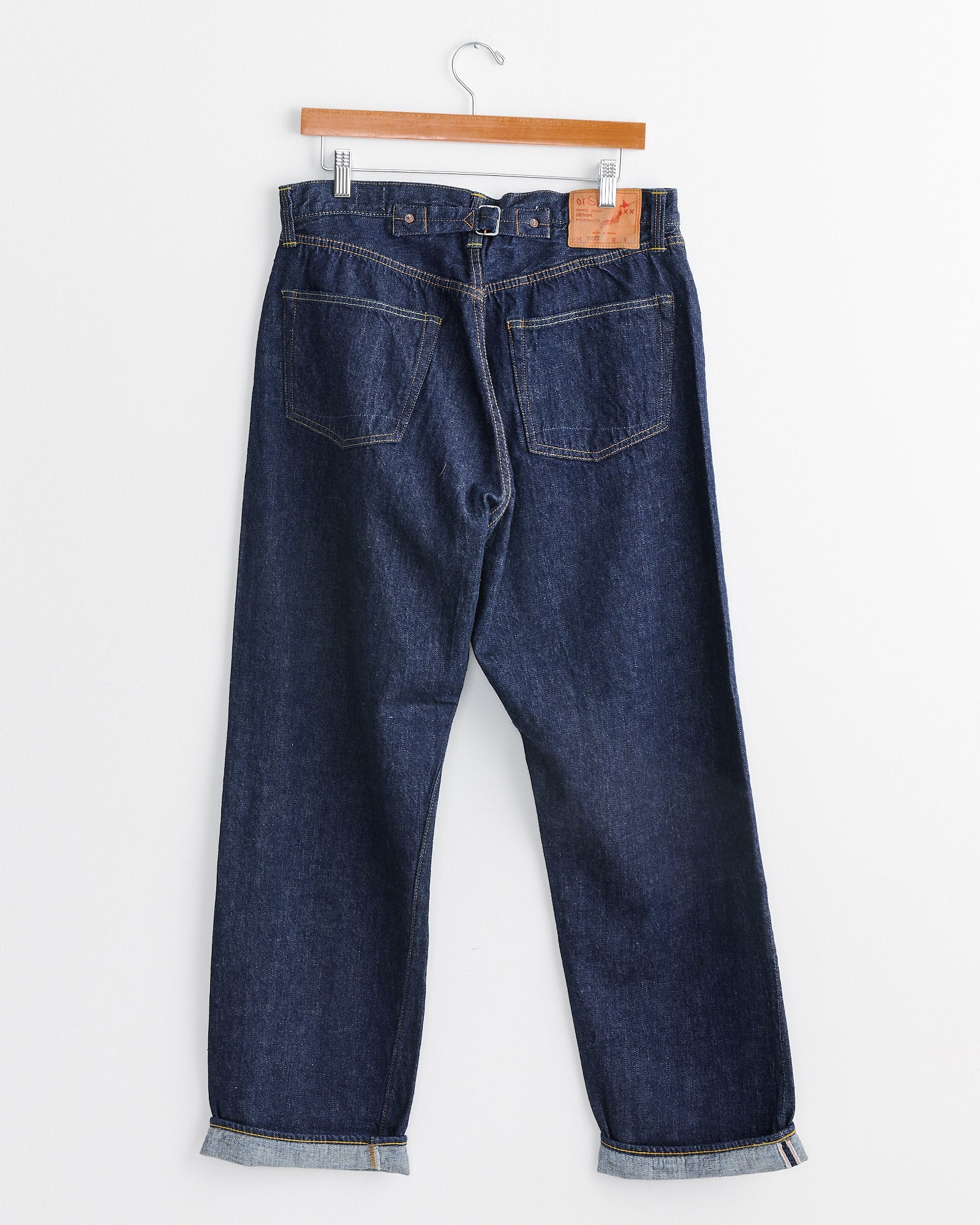 The Grand Dad’s Fit Denim Pant by orSlow is inspired by vintage 1930s Levi’s 501XX, cut from 14oz Japanese selvedge denim. It features a high rise and wide, straight leg with classic workwear details including a back cinch, hidden rivets, a selvedge coin pocket, and a button fly. Finished with leather patch branding and a one wash treatment for immediate wearability.