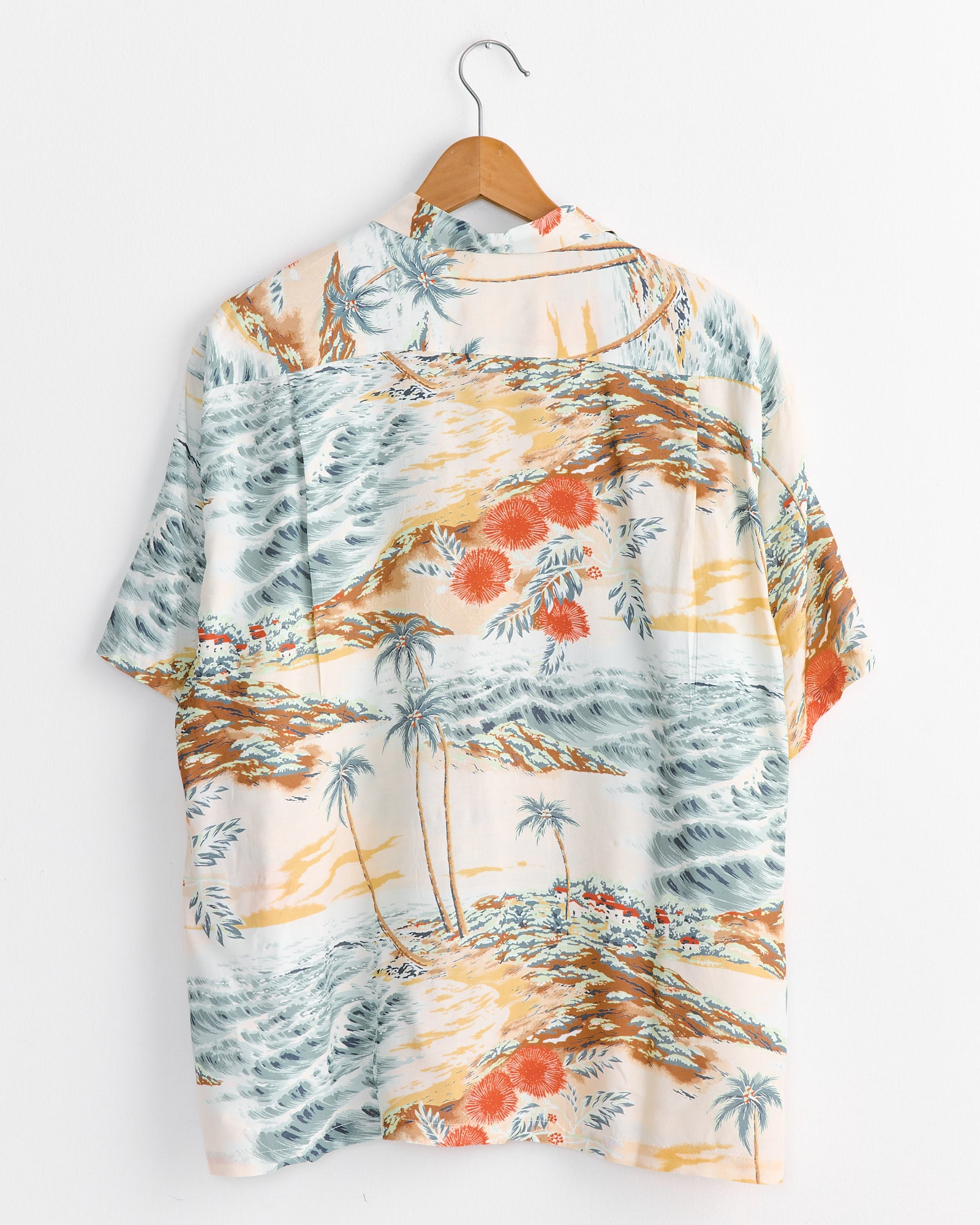 The Hawaiian Shirt by orSlow in Ecru features an iconic vintage-inspired print and a relaxed silhouette. Designed with an open collar, back pleats, and a straight hem, it includes a single chest pocket and five-button closure. A lightweight and breathable layer, perfect for beach days or casual outings.
