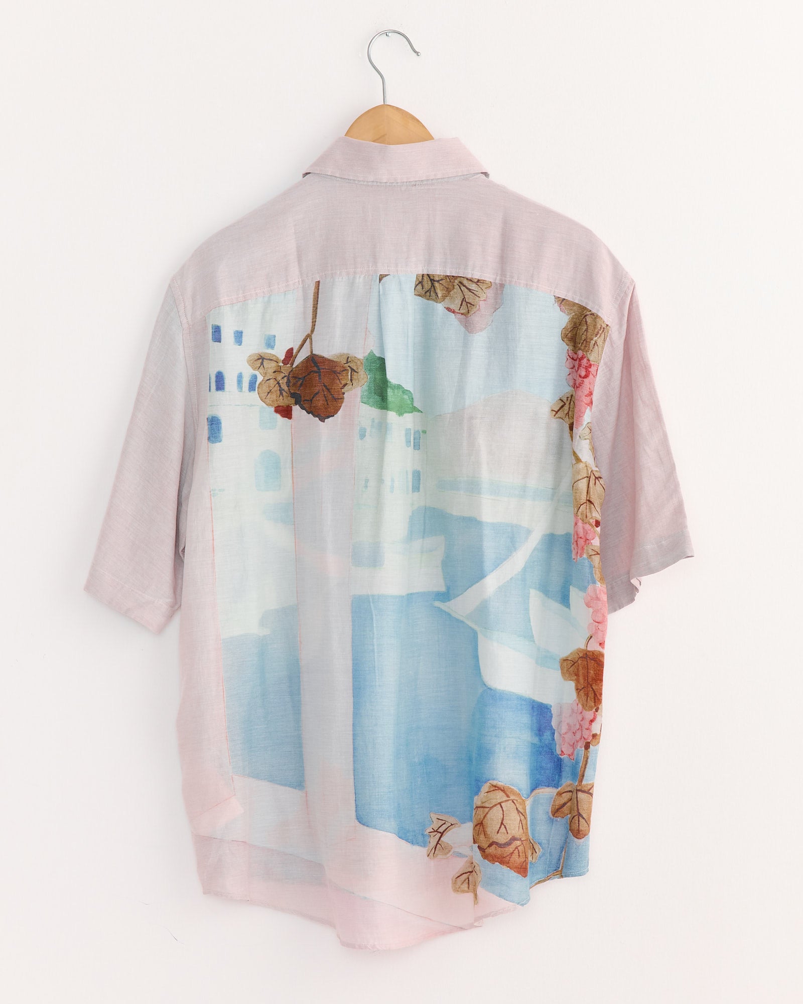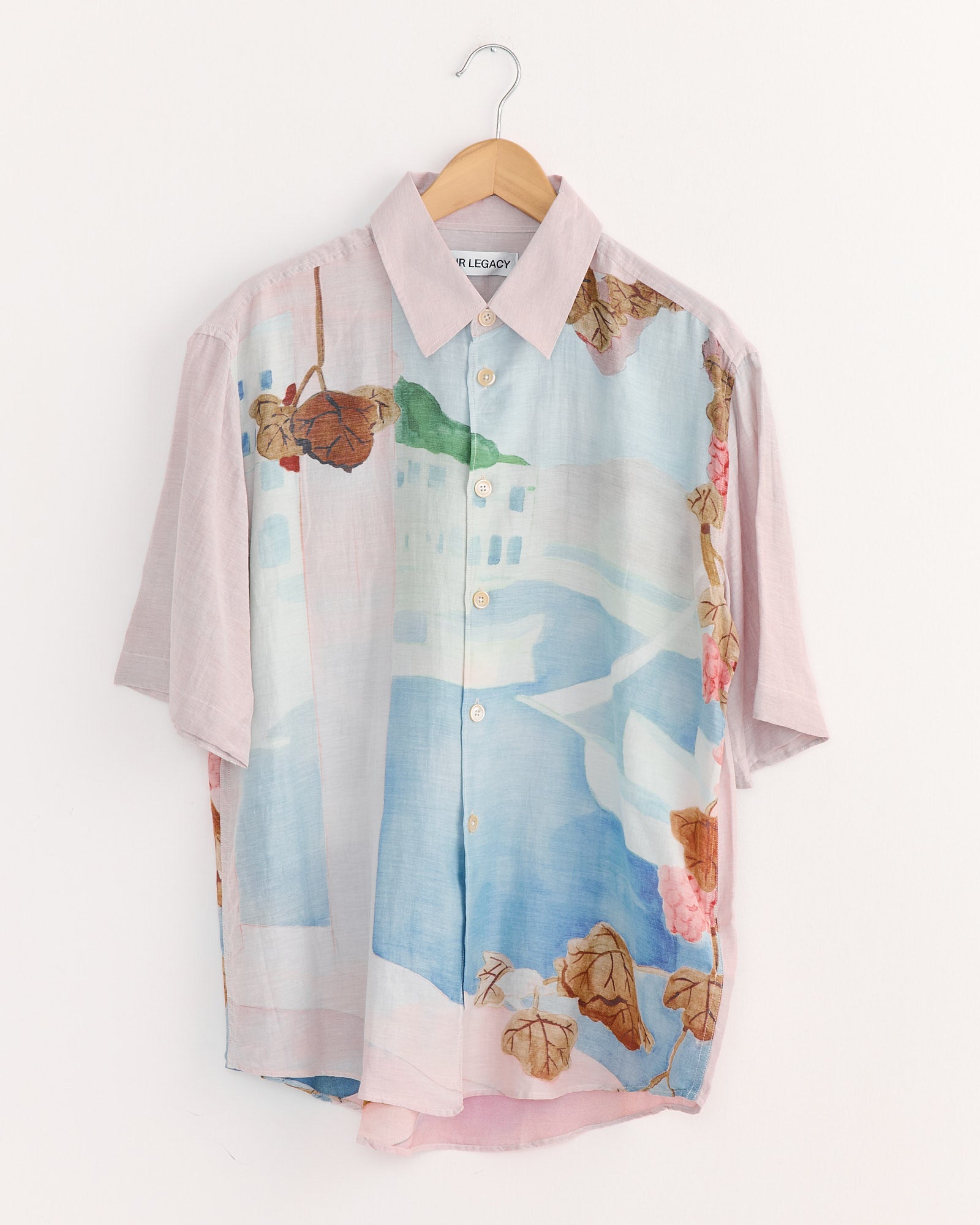 The Our Legacy Beyond Shirt Shortsleeve has a regular, straight fit and is crafted from a Portuguese cotton and silk blend fabric in the Marina Vista Print. It features slightly elongated short sleeves, mother-of-pearl buttons, and a curved hem for a refined yet lightweight feel.