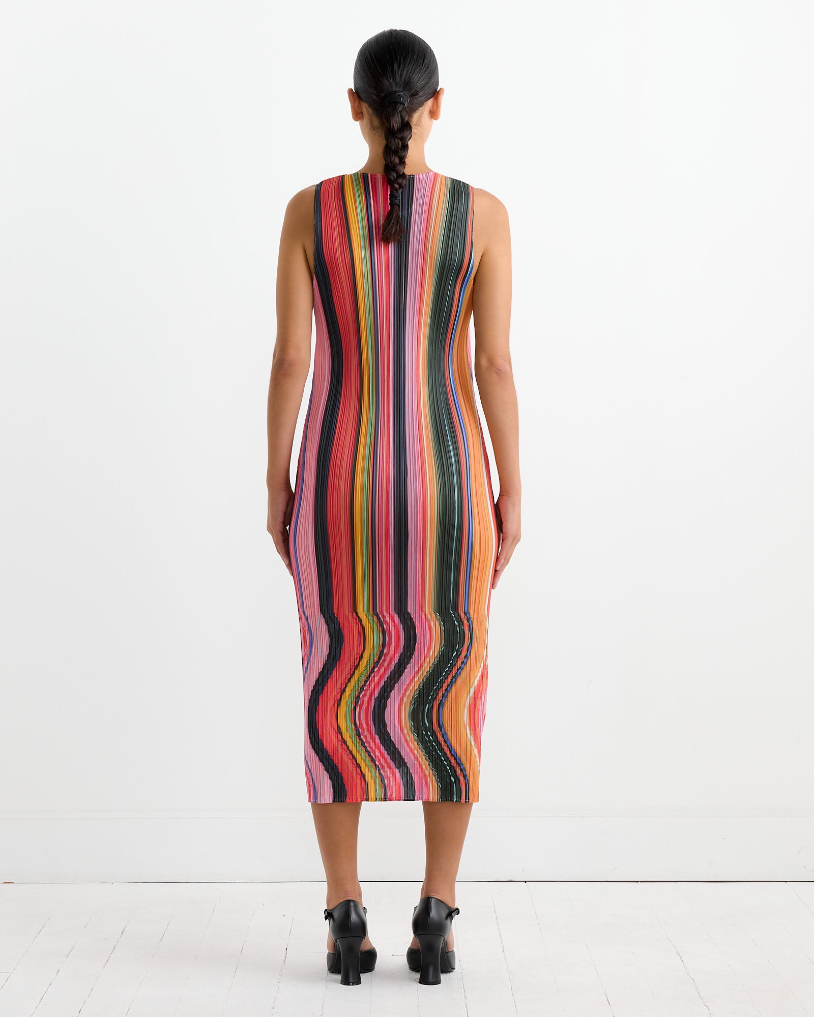 The Issey Miyake Pleats Please Warp Dress in Pink is part of the vibrant Warp series, inspired by the concept of space-time distortion. This sleeveless dress features a relaxed, straight fit with a round neckline, making it both comfortable and stylish.