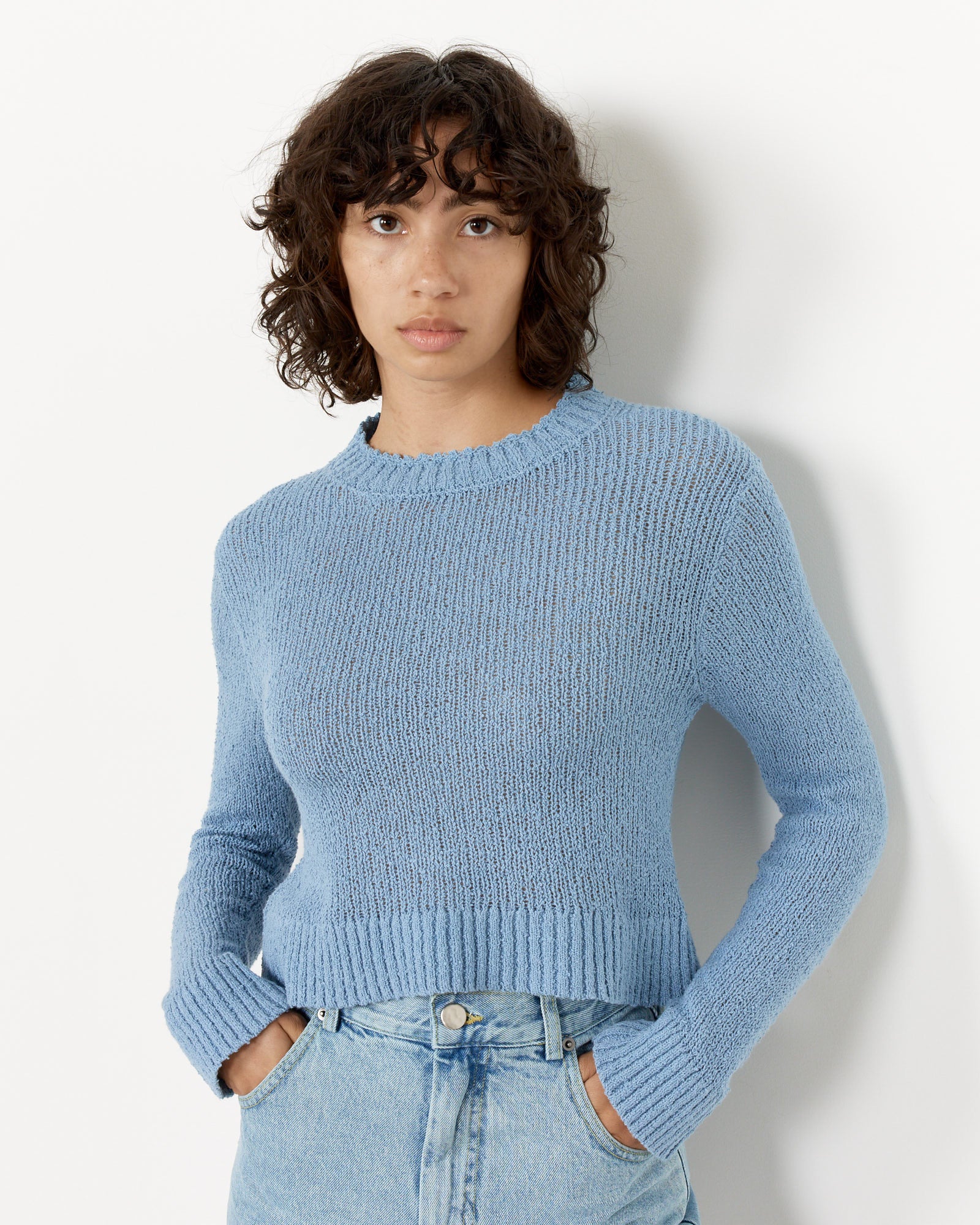 Rachel Comey's Barca Pullover is an every-season essential in the brand's signature lightweight cotton boucle with a hand-crocheted picot neckline and ribbed hem.