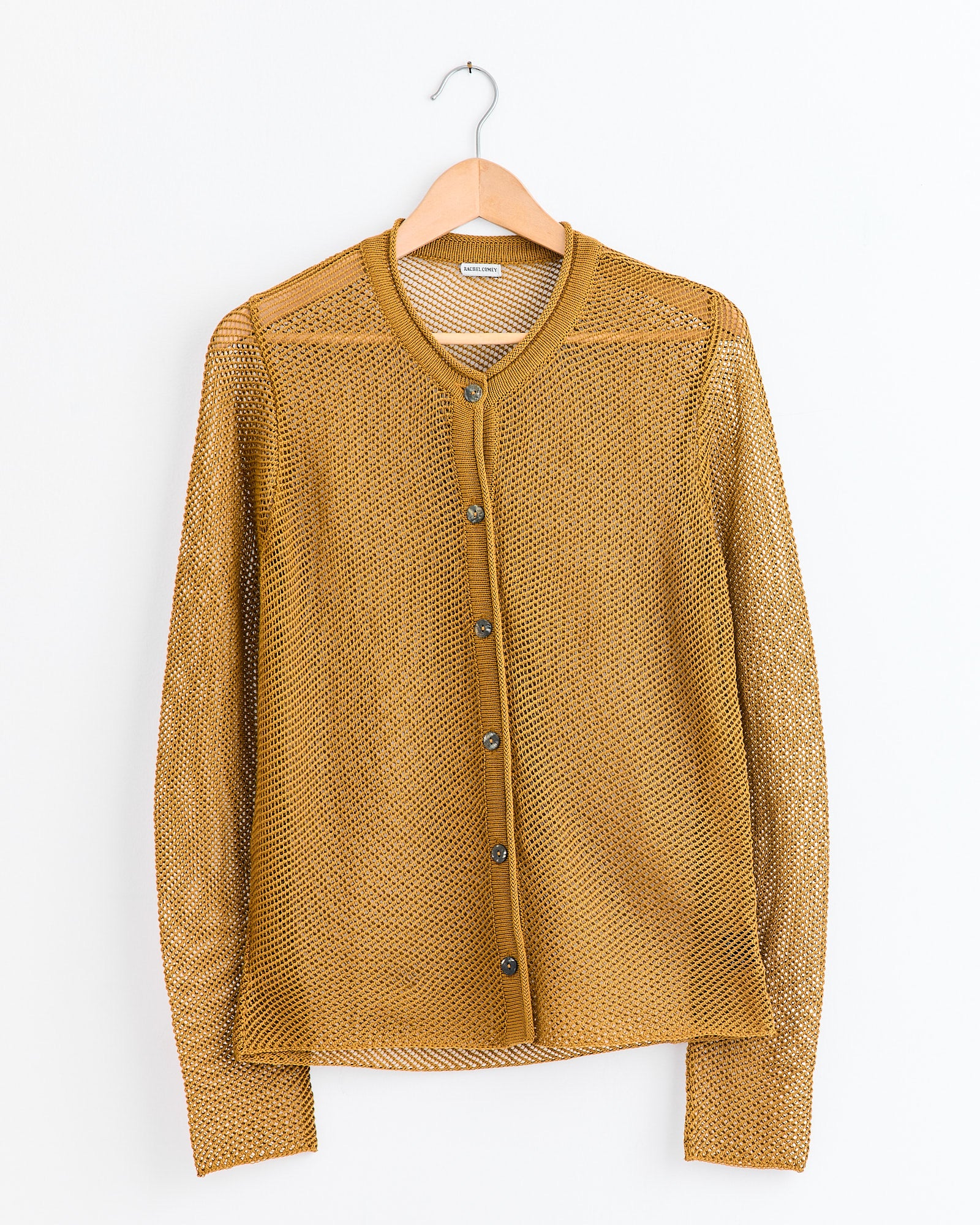 The Rachecl Comey Dunne Cardigan is a sheer open-weave knit made from 100% mercerized pima cotton.