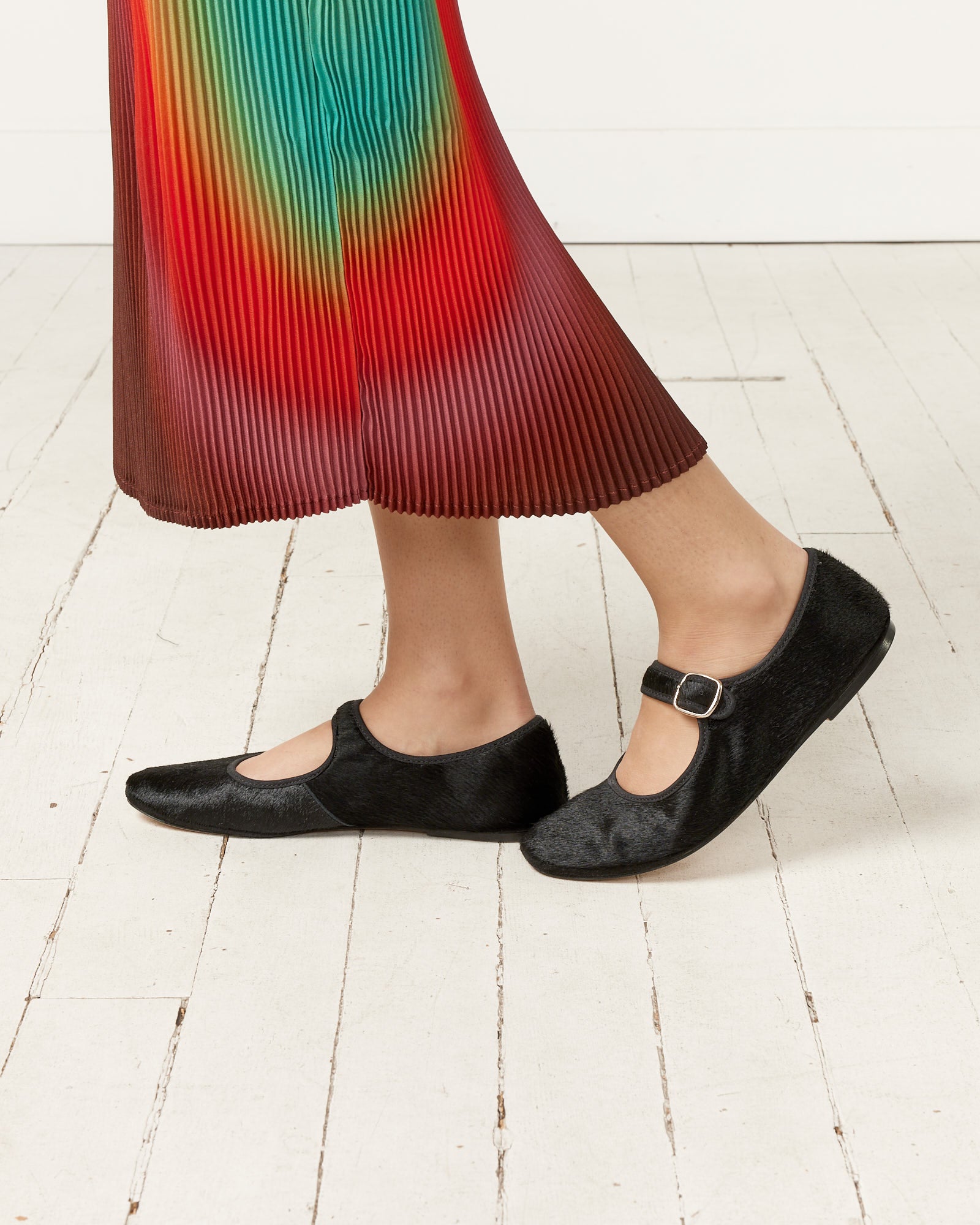 Updated for the season with a longer strap, Rachel Comey's Piscis Flat is their take on the timeless Mary Jane with a round toe, calf hair leather upper, and a rubber sole.