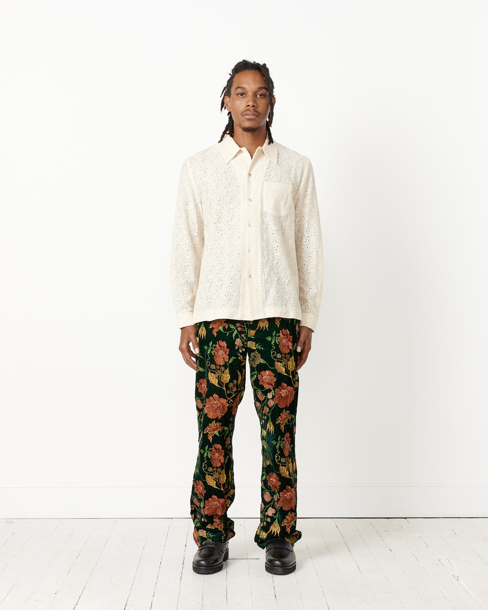 Sefr's Jagou Shirt is constructed from a beautiful lace-inspired Indian fabric and features Italian mother-of-pearl button buttons, a straight hemline, and a French placket.