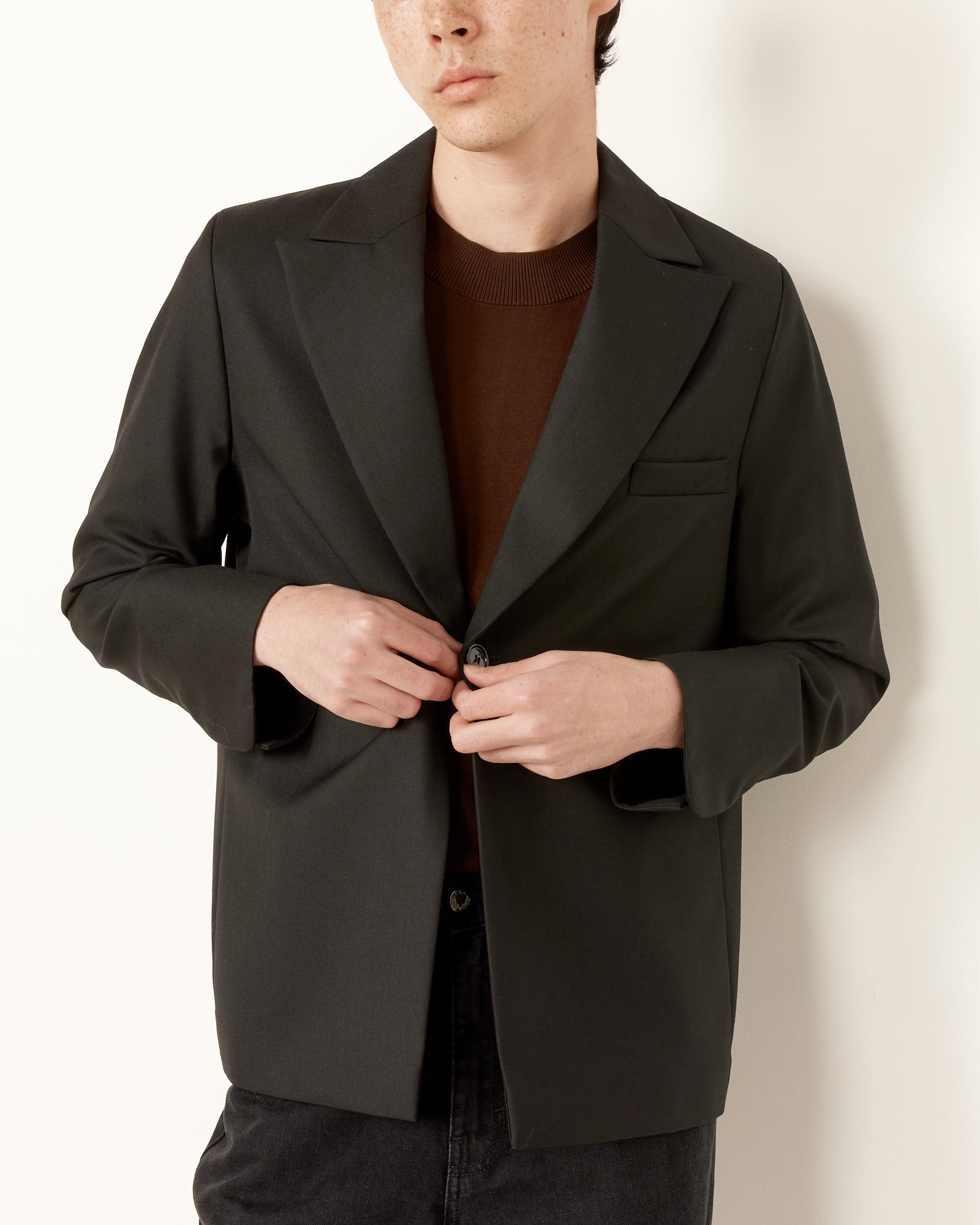 A strong blazer crafted in a lightweight Bulgarian wool-blend fabric, Séfr's Power Blazer features wide notched lapels, a single-breasted horn-button closure, and open-end detailing at each cuff.