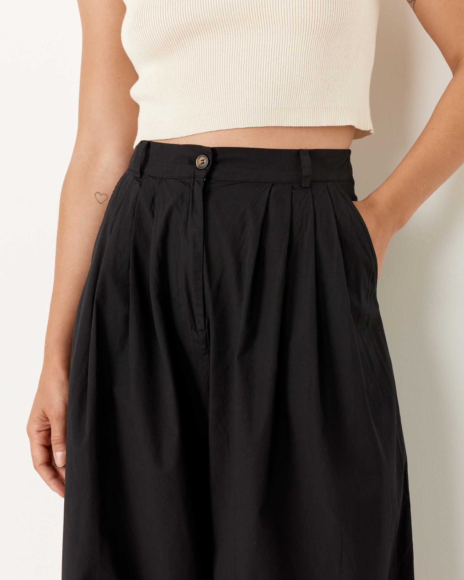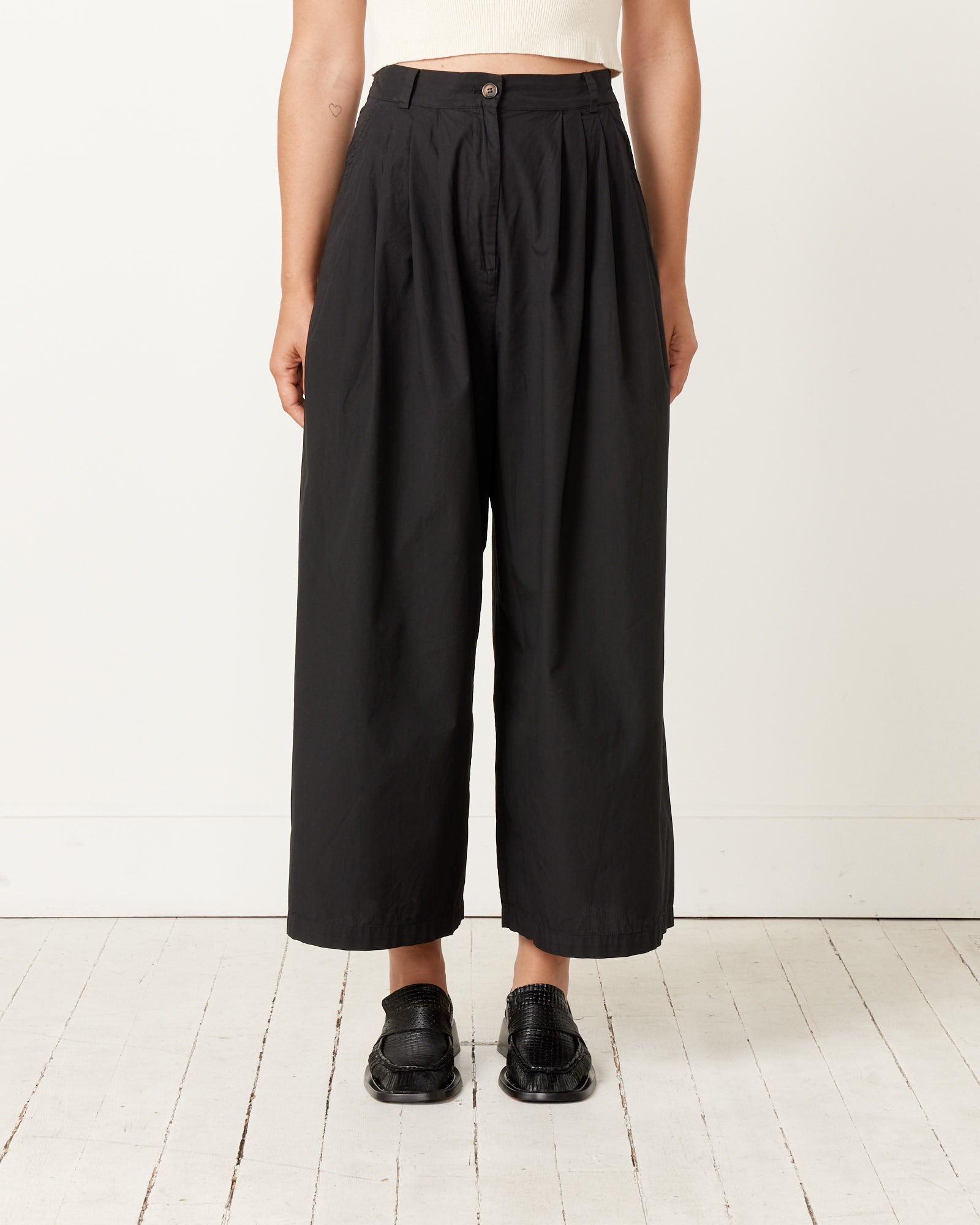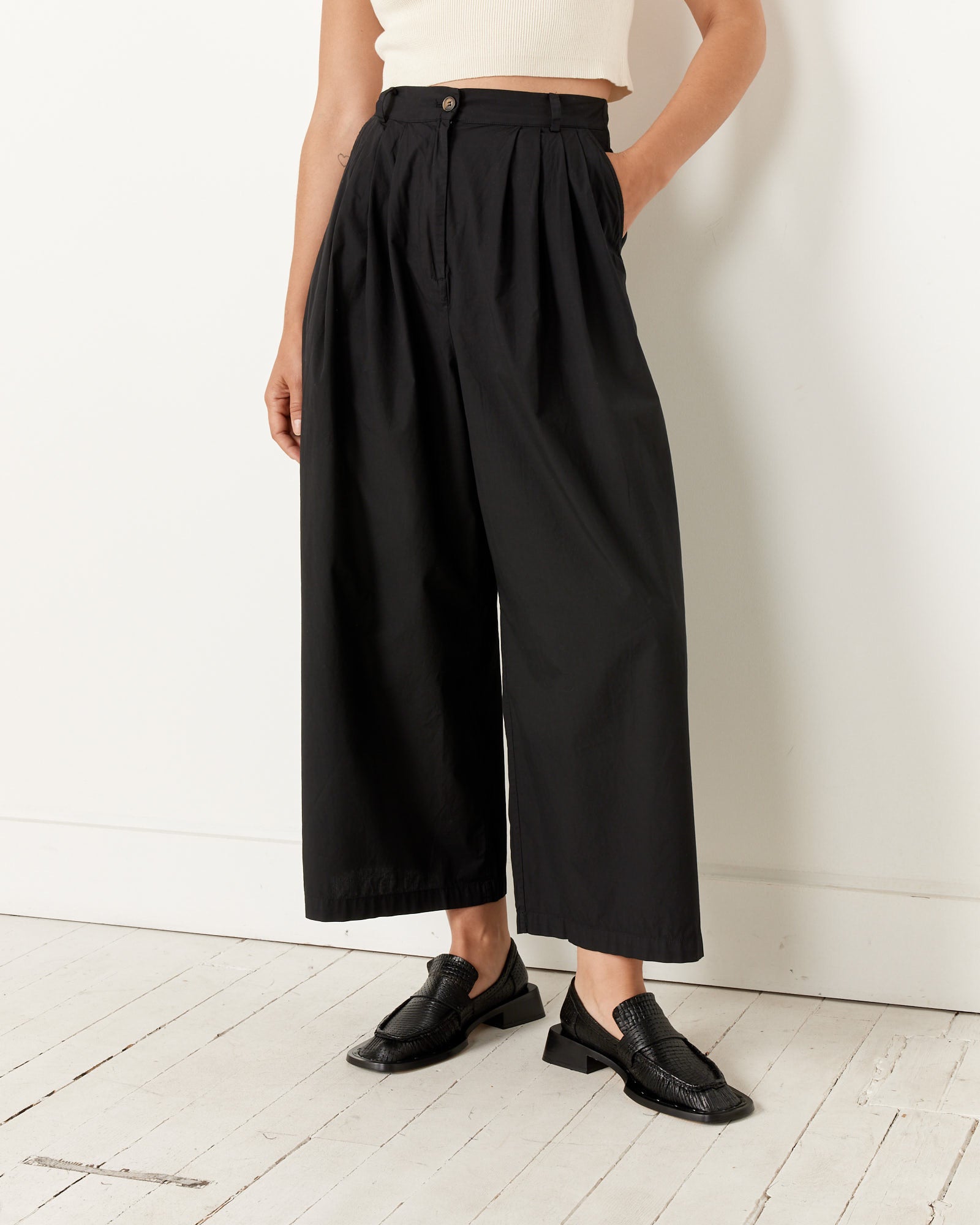 Crafted in a lightweight organic cotton poplin and cut in a cropped, wide-leg silhouette, Shaina Mote's Volume Trousers feature front pleats, a fixed waistband at the front with side seam pockets, and no waistband at the back for a clean side seam silhouette.