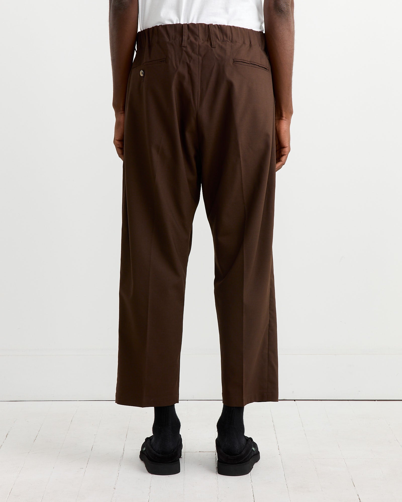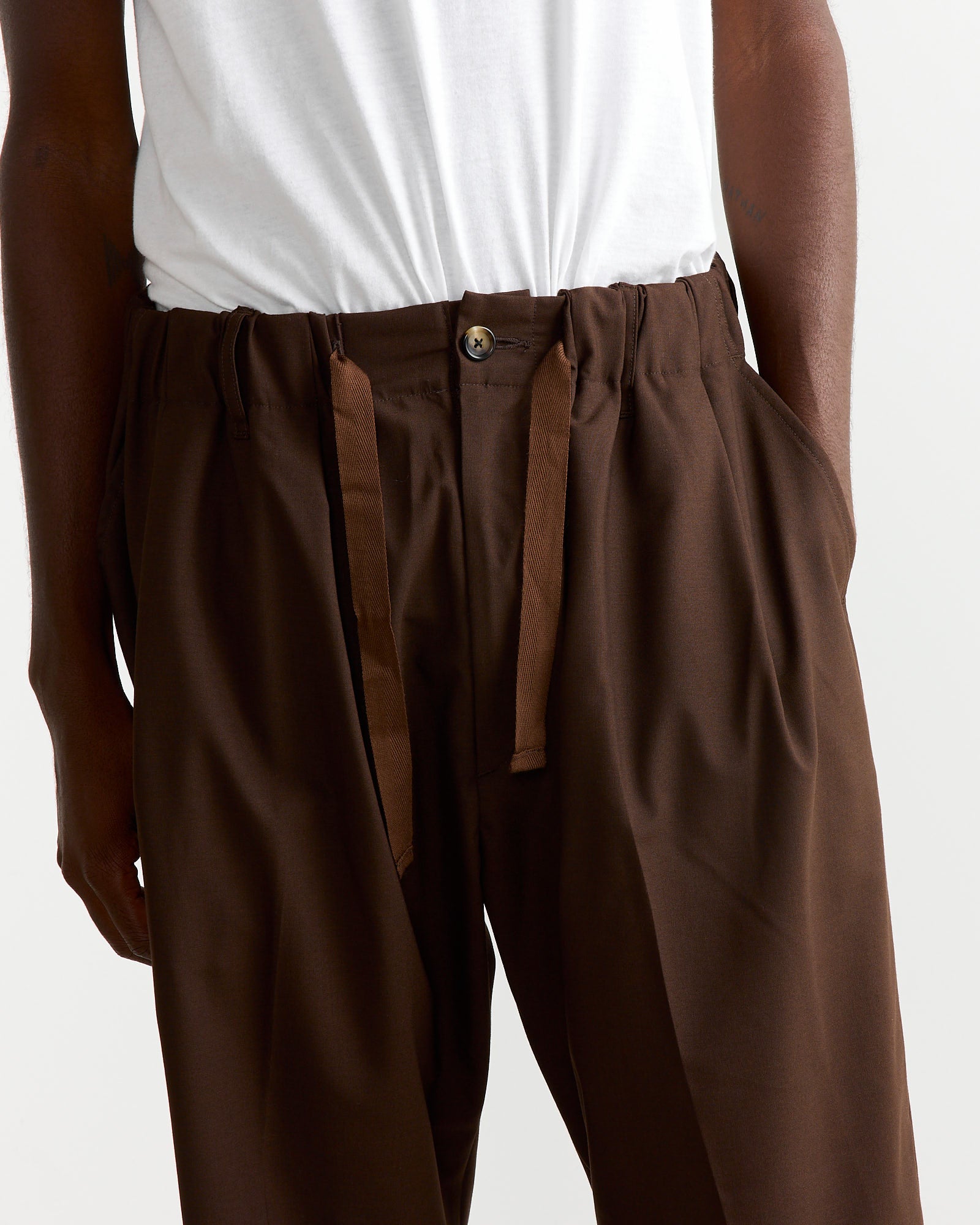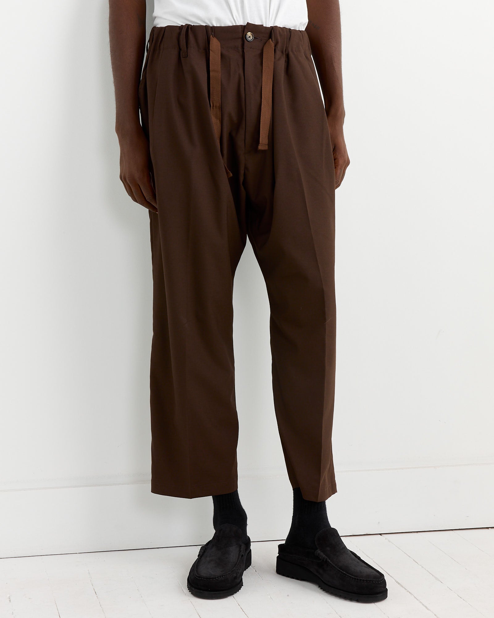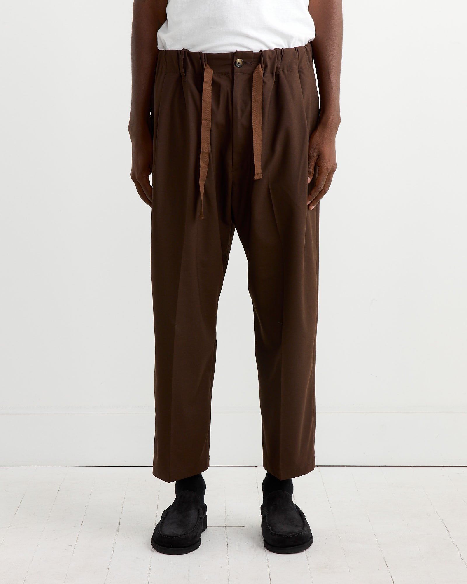 Sillage's Baggy Trousers in Brown maintains the brand's affinity for roomy silhouettes and pairs it with their most aggressive taper for a versatile shape that can be worked into looks with ease. The pant features front pleats and a comfortable elasticated waistline with drawstring adjustment.