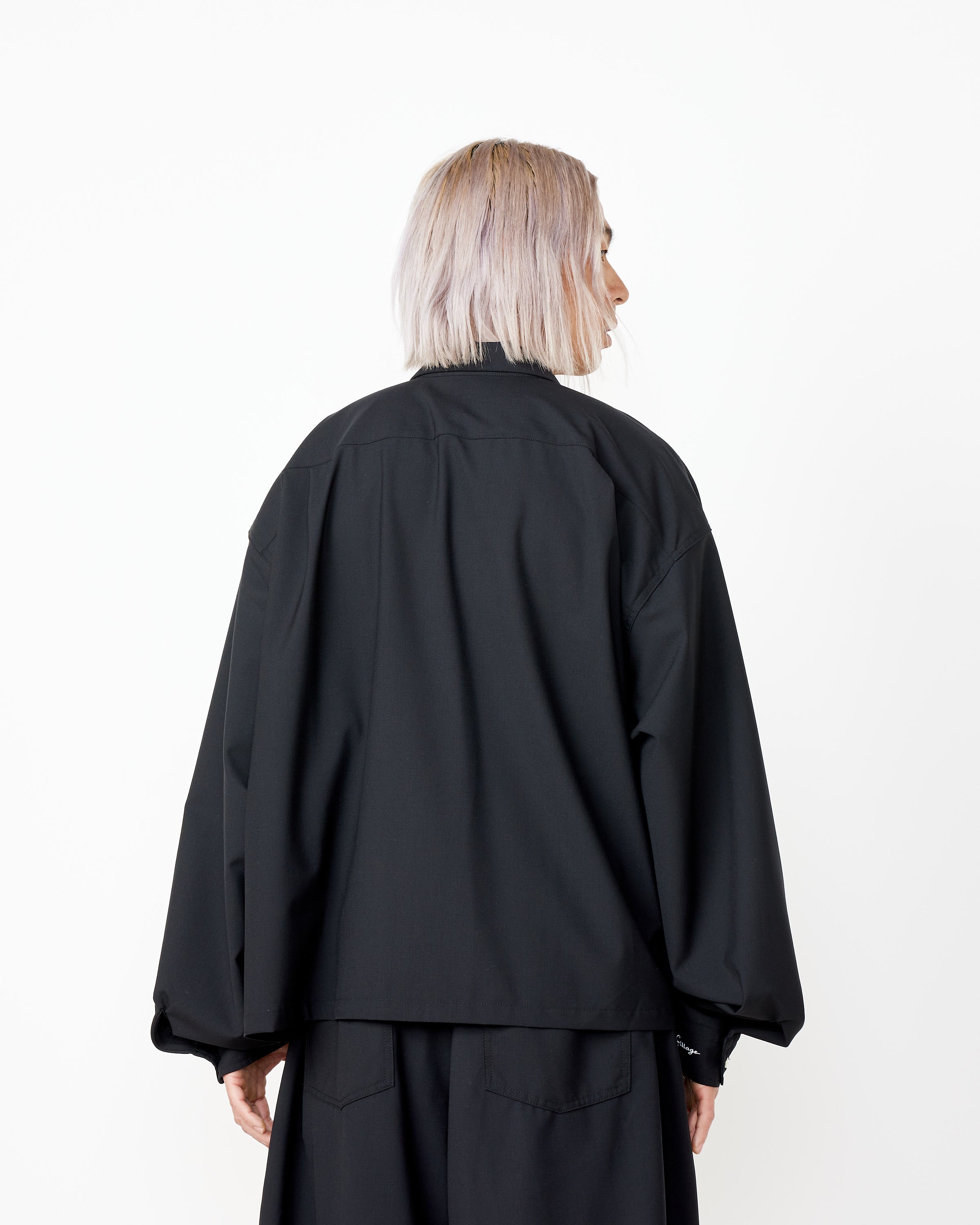 One of the most iconic of Sillage's effortlessly relaxed garments, the one-size-fits-most Sillage Overshirt features a much-beloved loose wide silhouette, an open collar, dropped shoulders, shell buttons, and voluminous sleeves.