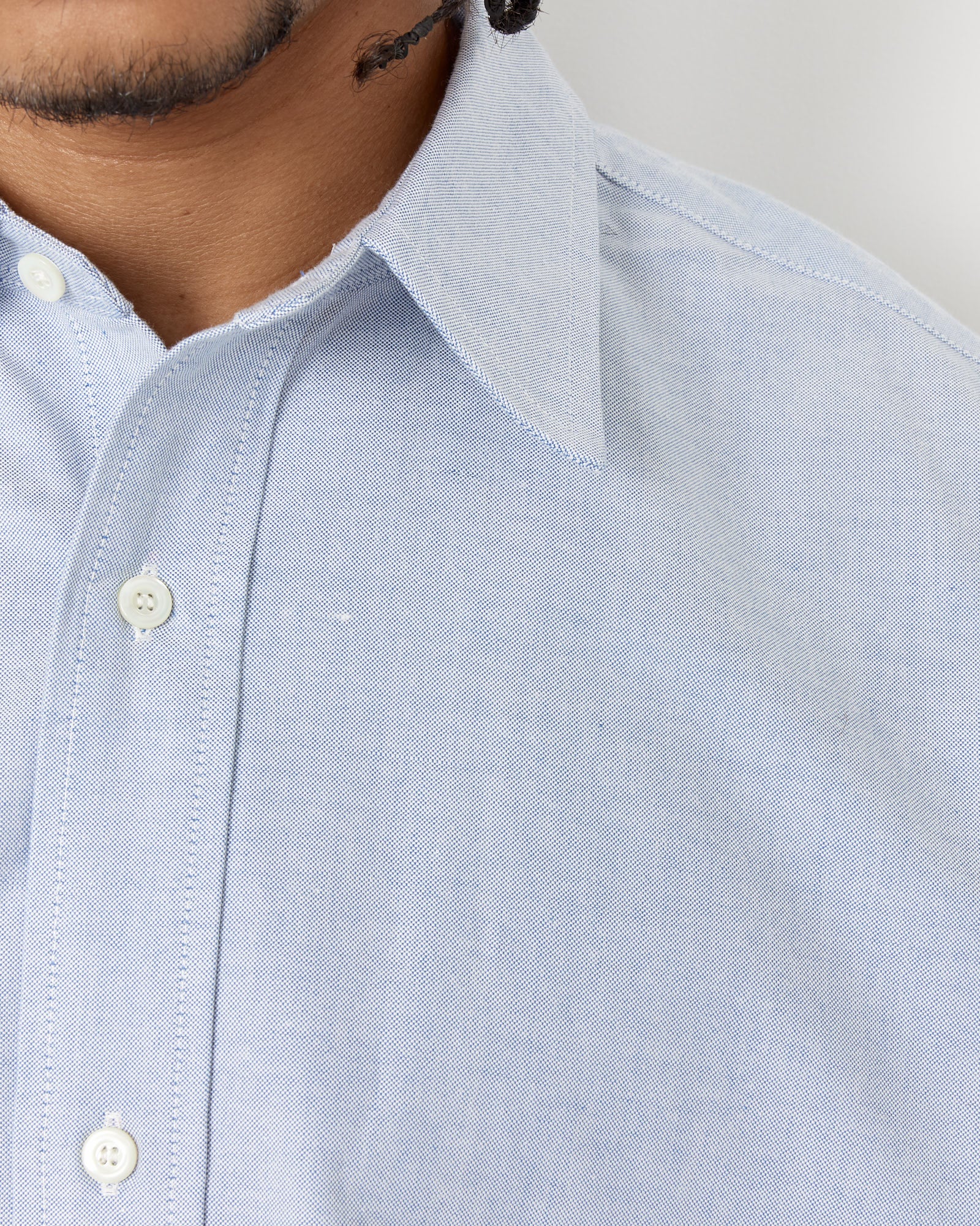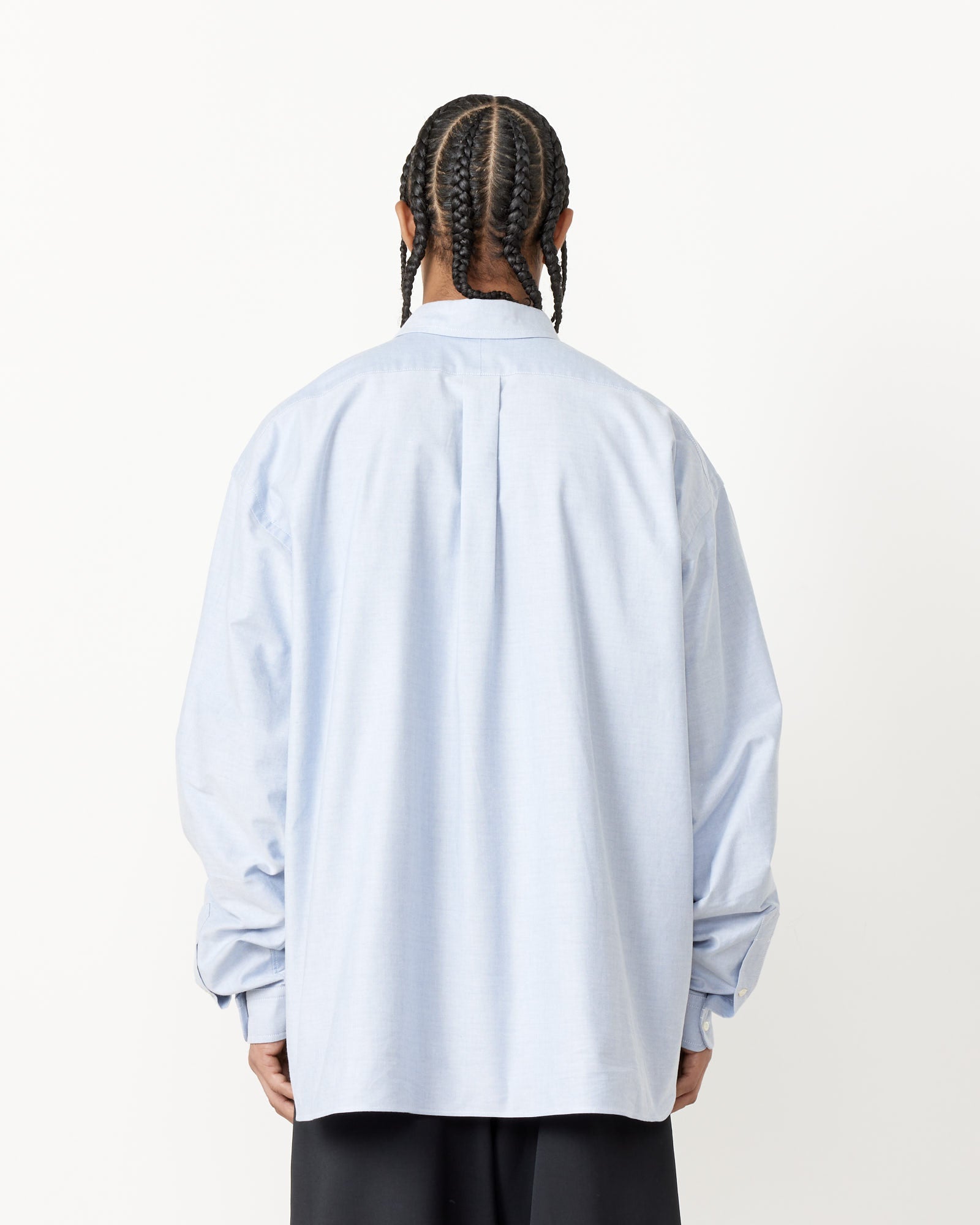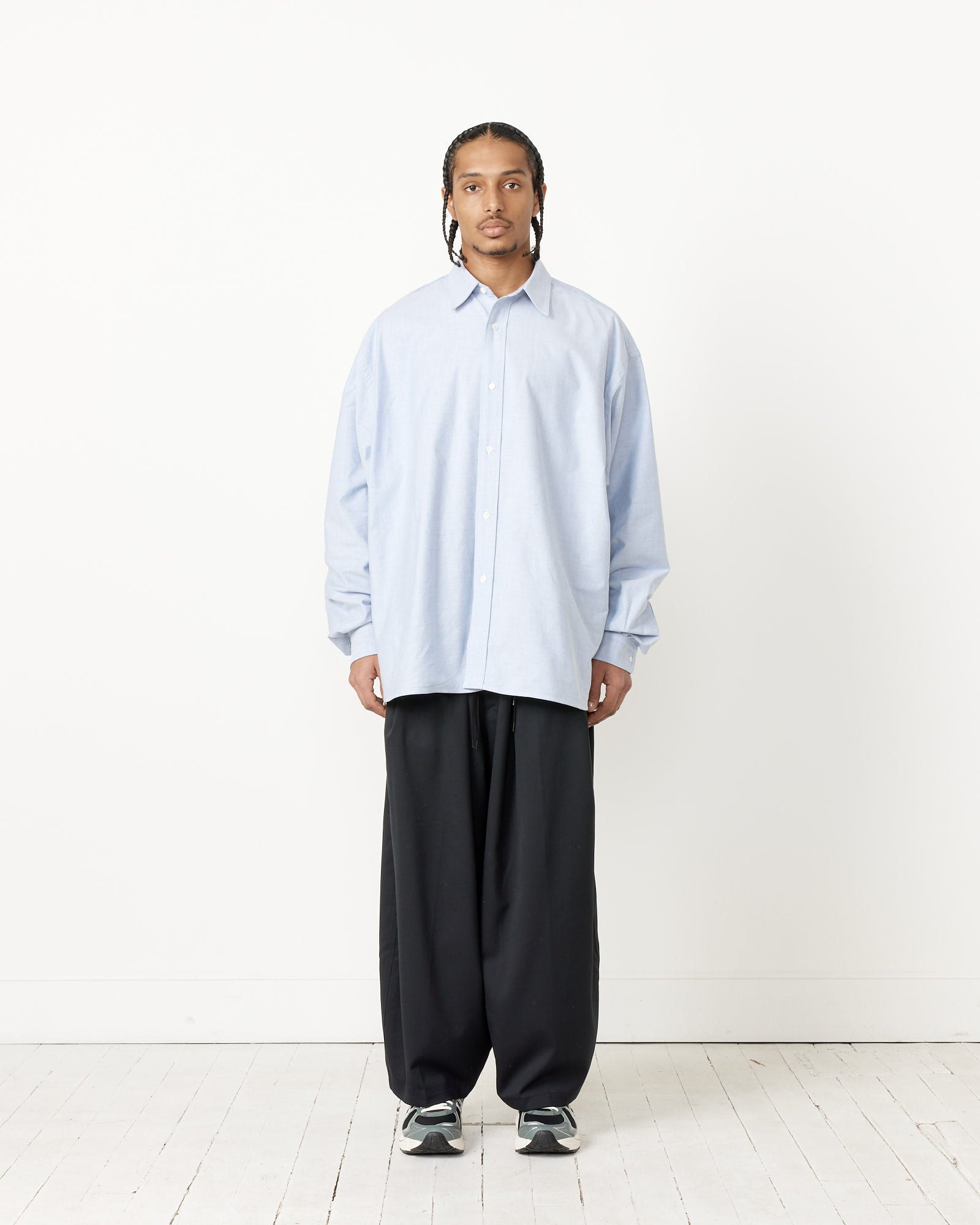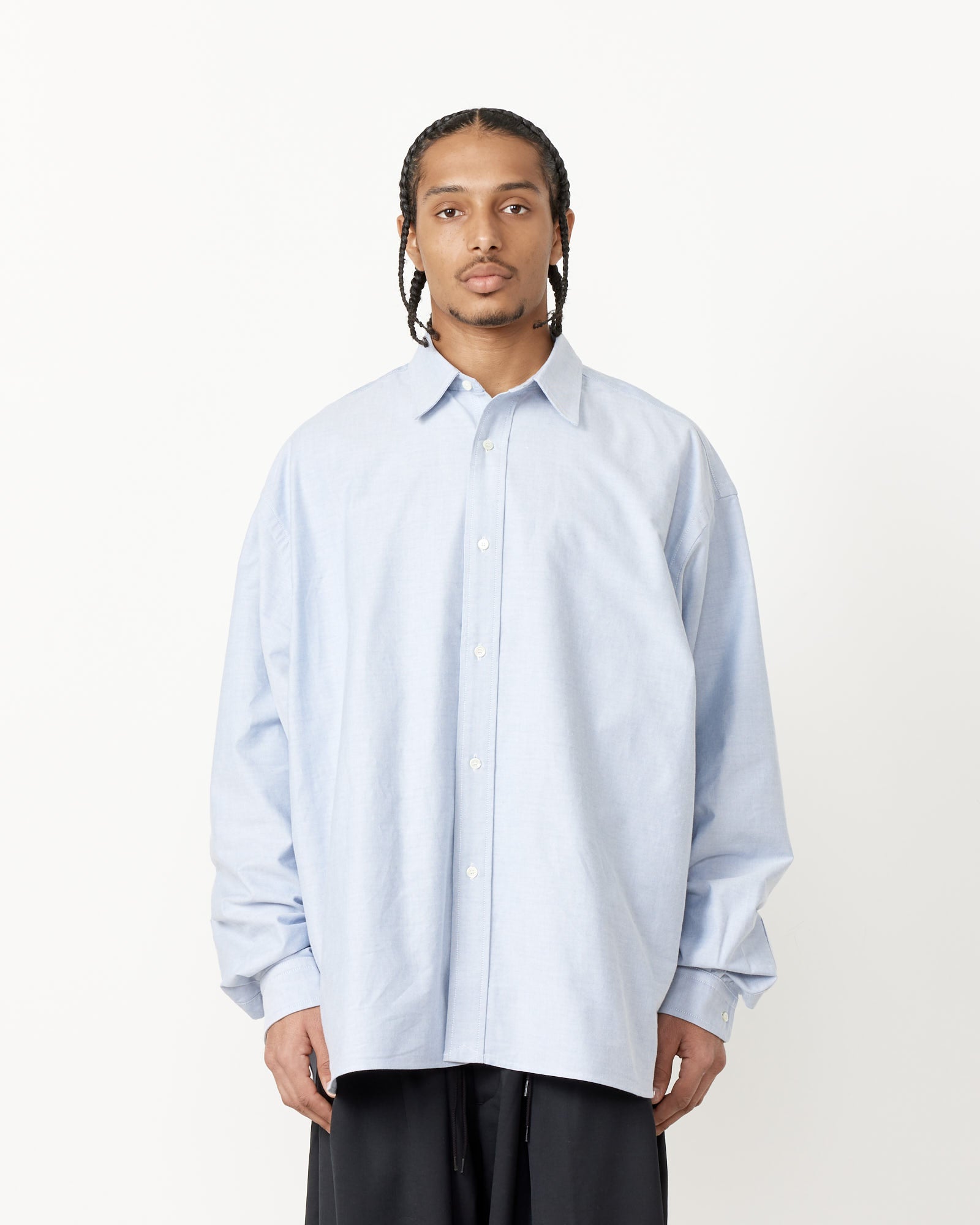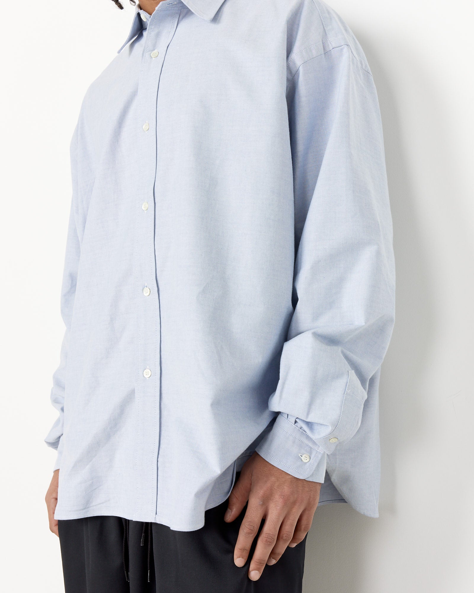 Sillage's classic oversized one-size-fits-most button down updated for the season in a fine cotton oxford, the Wide Shirt in White features the brand's signature loose silhouette, a point collar with dropped shoulders, shell buttons, and an embroidered logo at the right cuff.