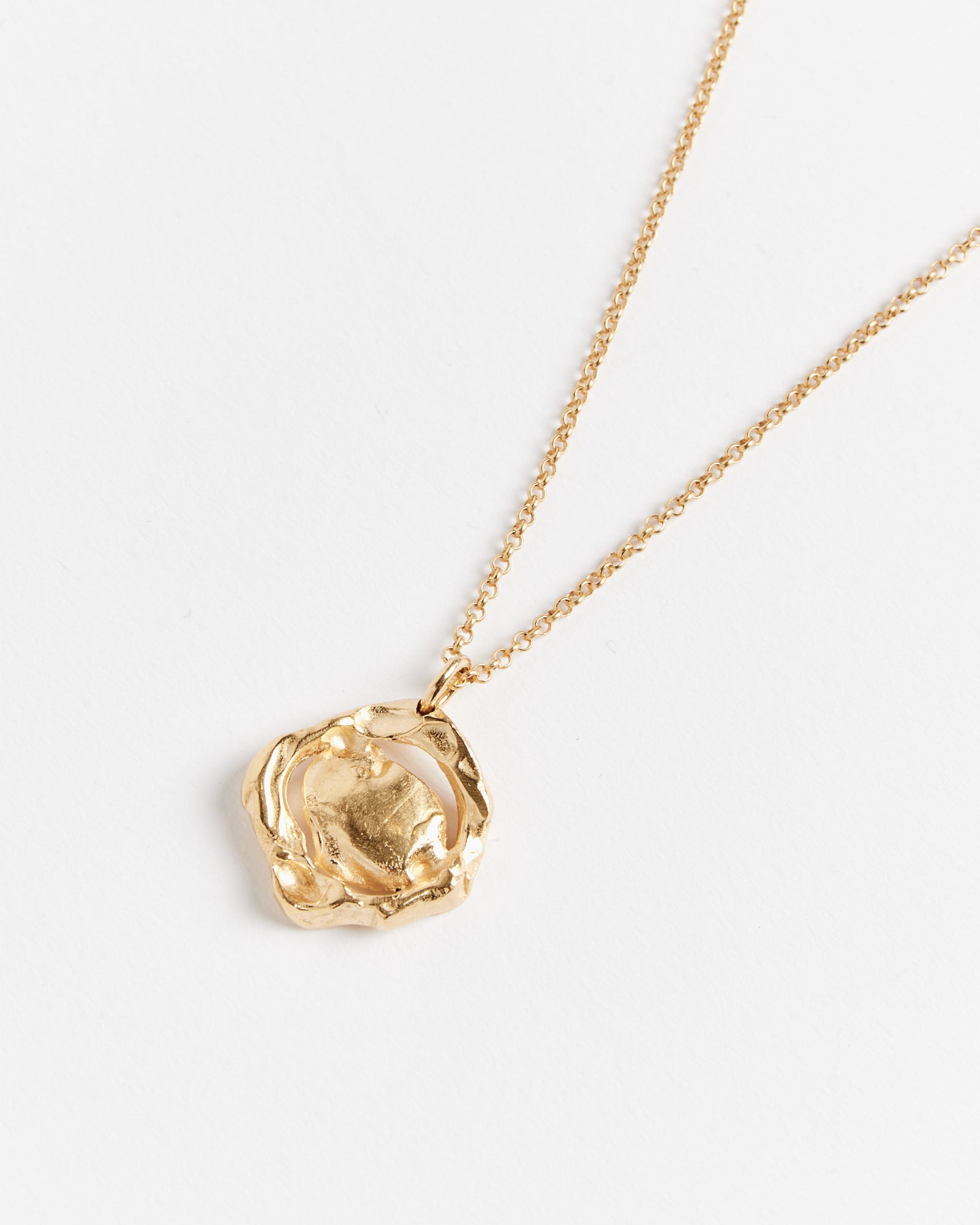 Inspired by the sea and marine forms created by marks left by sand and water, Simuero's Amuleto Necklace is crafted in 18k gold-plated silver and features a charm strung on a delicate chain.