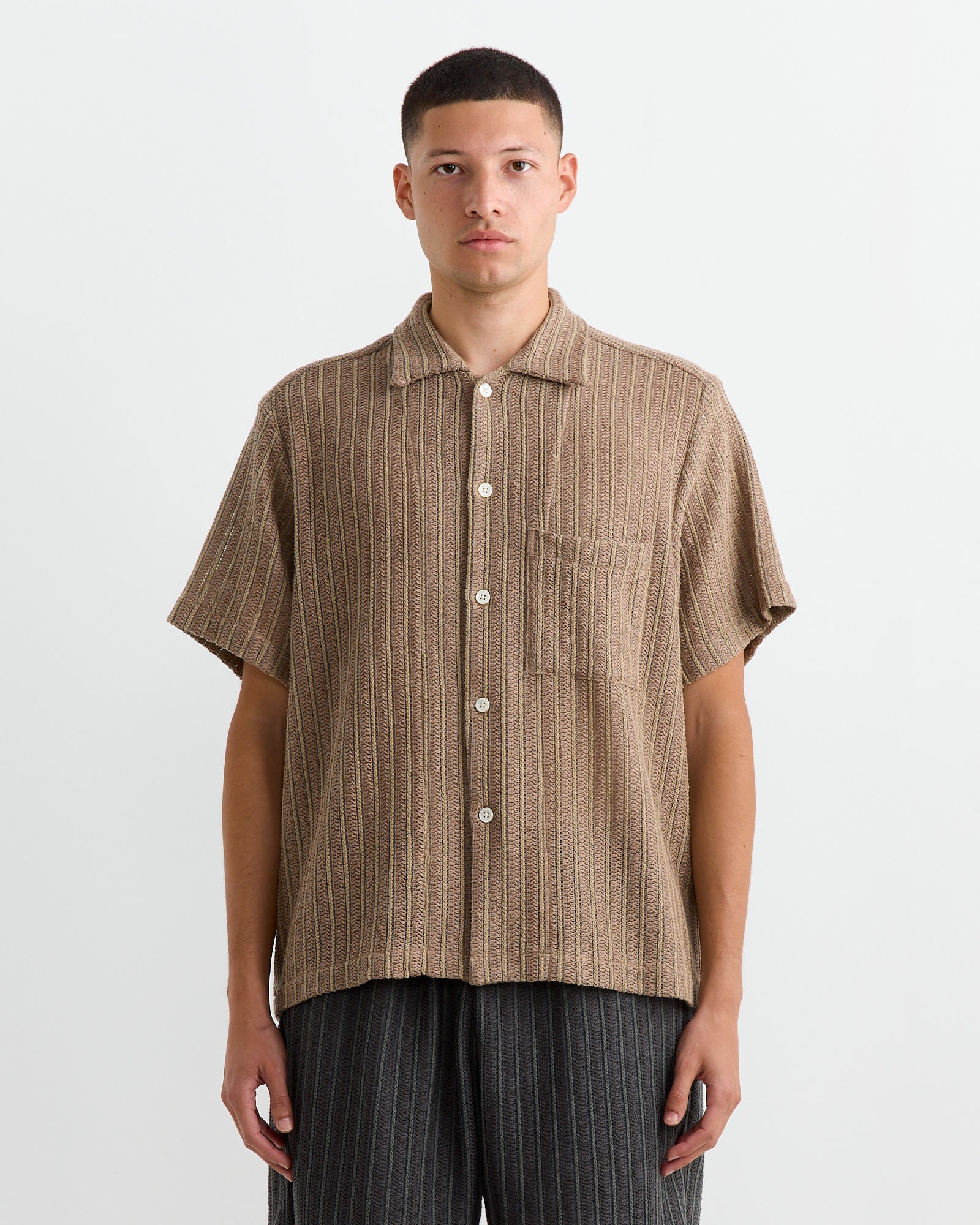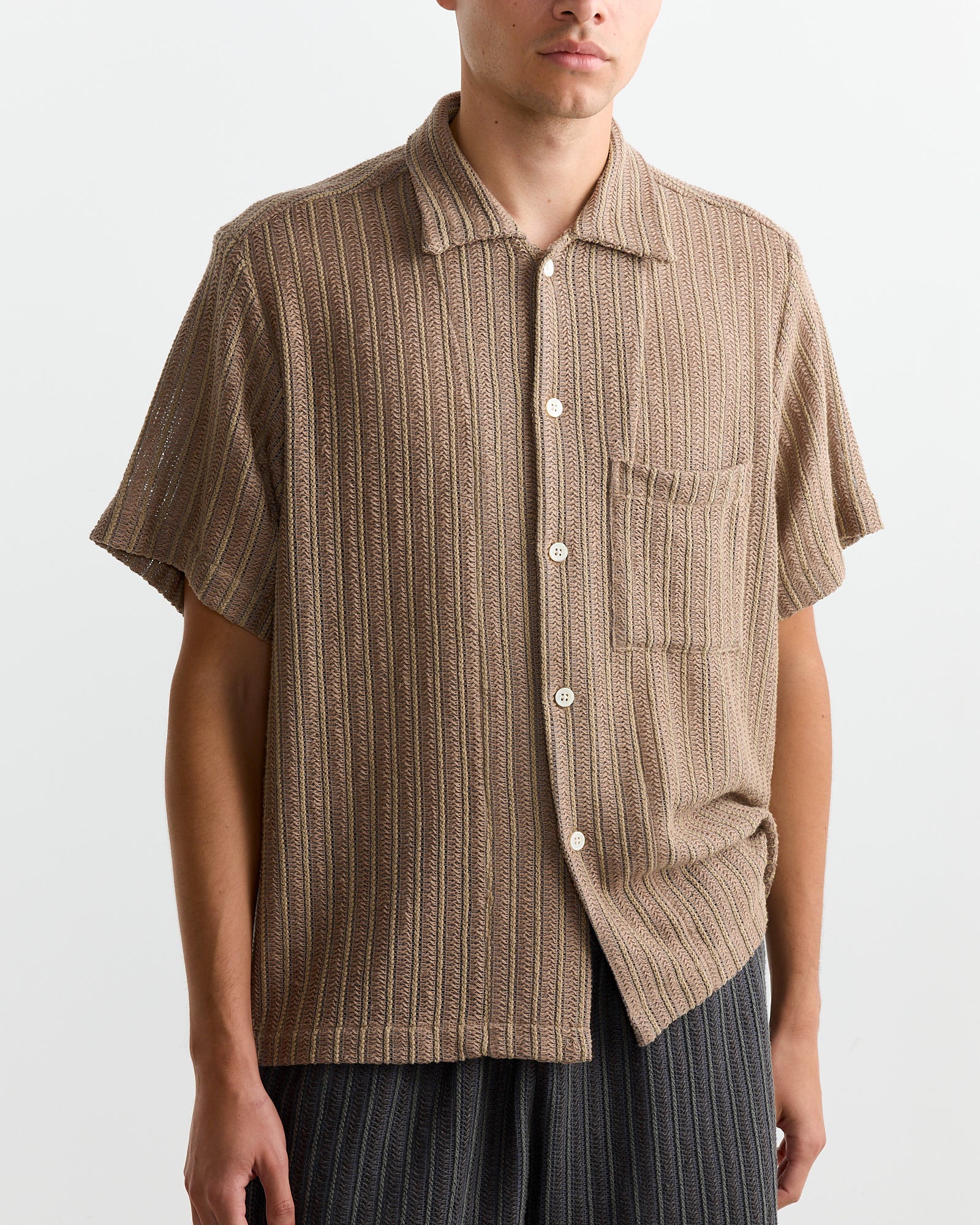 Acoustic Shirt in Cotton/Linen Mesh Tan