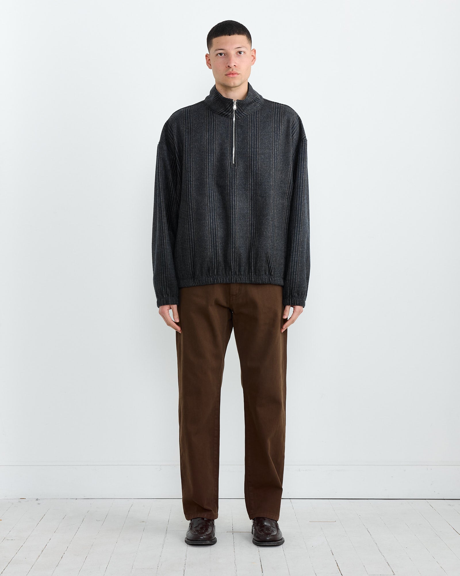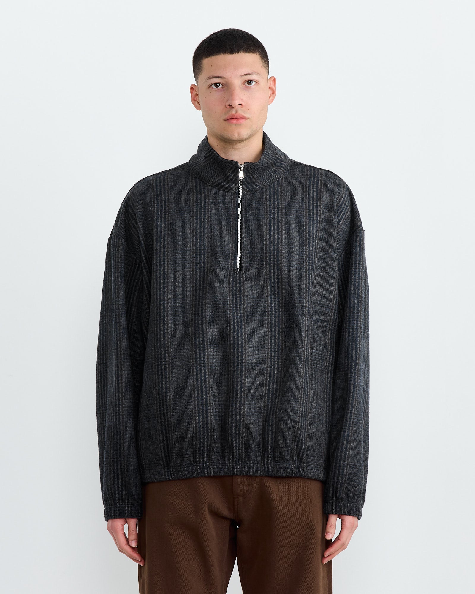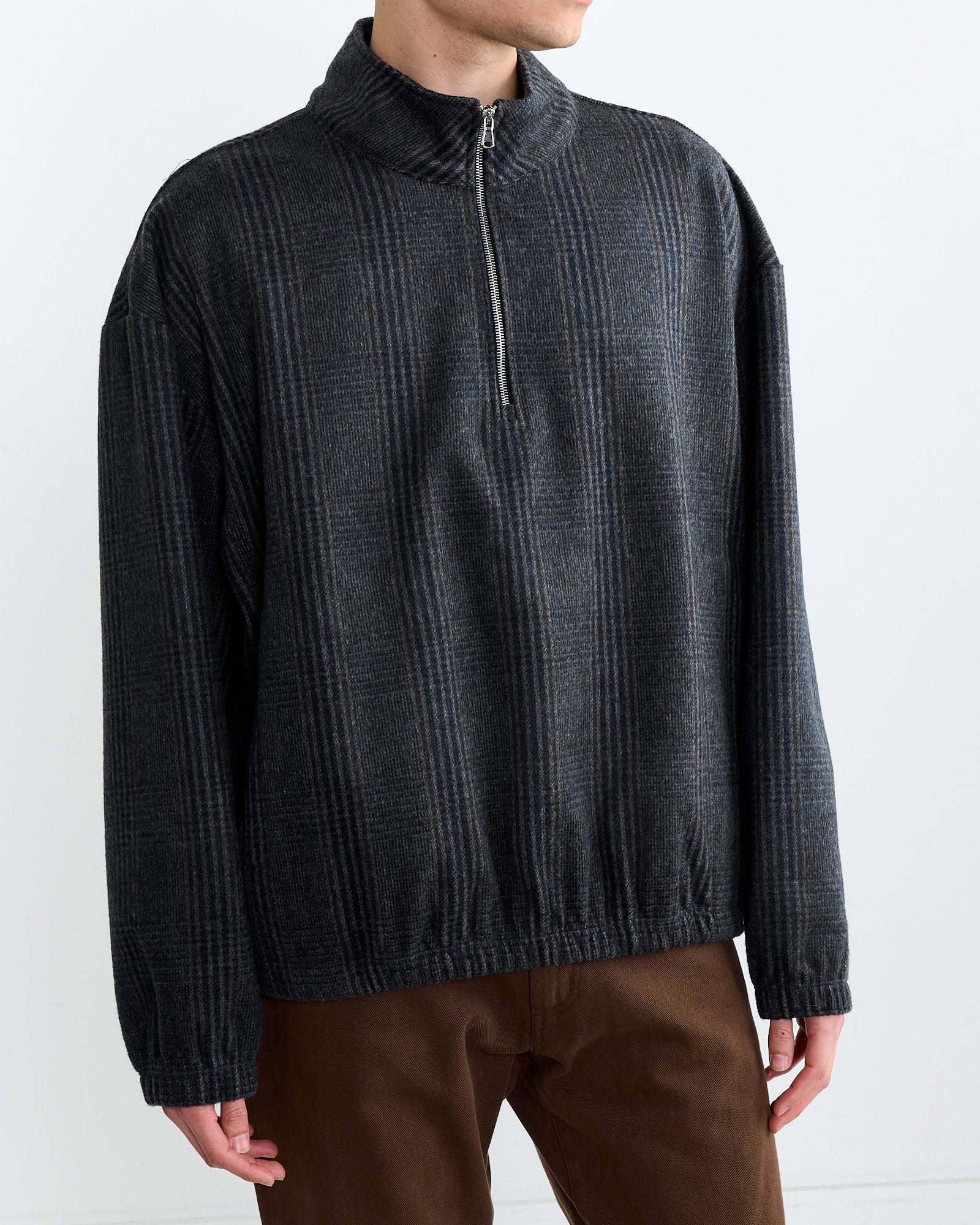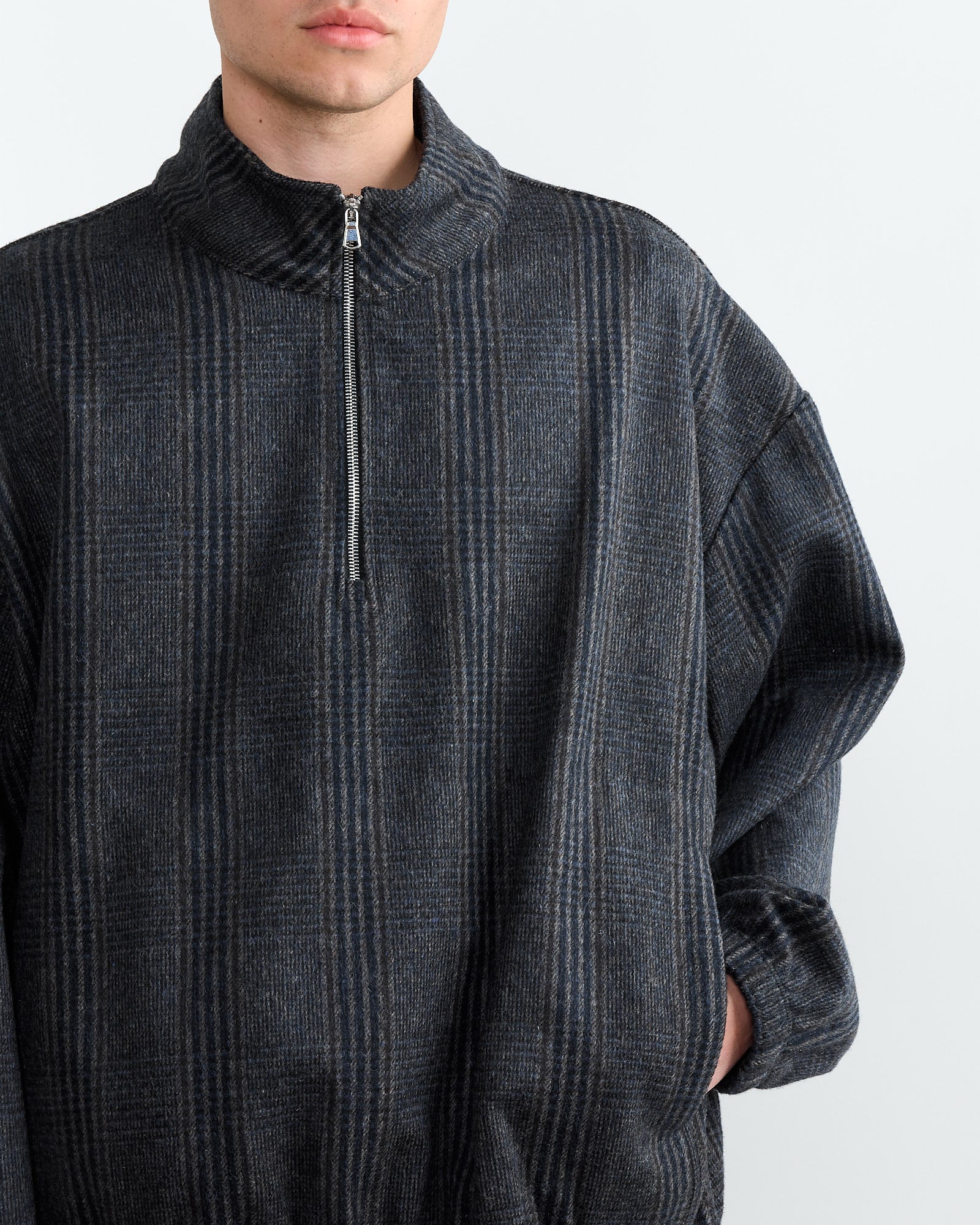 A refined take on a classic, the Alpina Pullover has become a best-seller since its debut. Crafted from premium Japanese wool and detailed with an Italian-made zipper, this pullover features a relaxed dropped-shoulder silhouette, a short standing collar, a practical quarter-zip closure, and a dual-entry hand-warmer pocket. An elasticated hem and cuffs ensure a comfortable and secure fit, making it a versatile wardrobe staple.