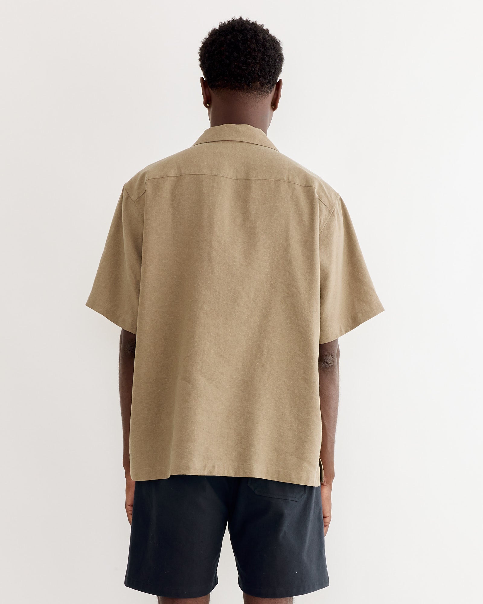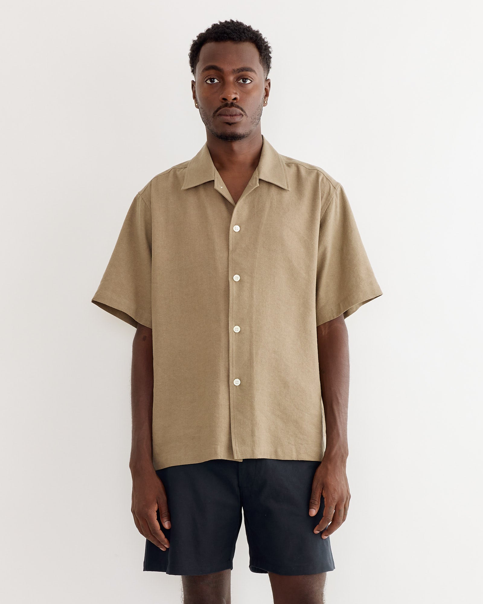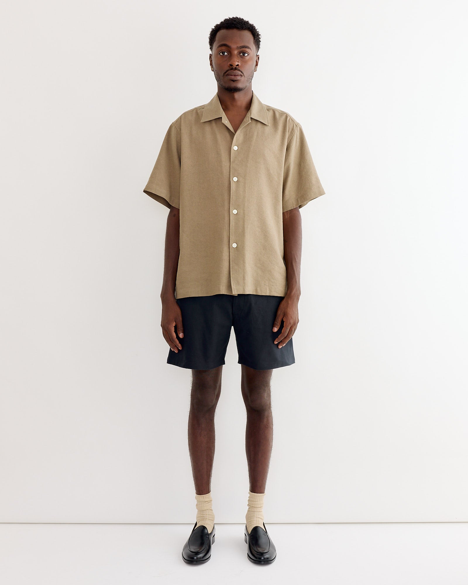 The SMOCK Cardiff Shirt in Raw Silk is a refined short-sleeve style crafted for comfort and breathability. Cut from lightweight raw silk with a dry, slubbed texture, it’s designed to soften with wear. Details include shell buttons, an open collar with a button closure at the neck, and side-seam slits for ease of movement.