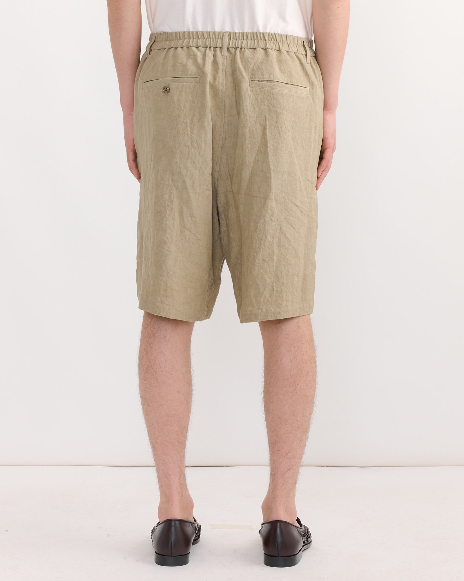 The Kogai Short in Sun Dried Linen is SMOCK’s newest silhouette, based on the best-selling Kogai Pant. Made in Los Angeles from open-air dried Japanese linen, the fabric softens and gains character over time. Designed with a single pleat, elasticated waistband, and knee-length inseam for a relaxed fit. Finished with slash and welt pockets, a buttoned waist, and YKK zip fly.