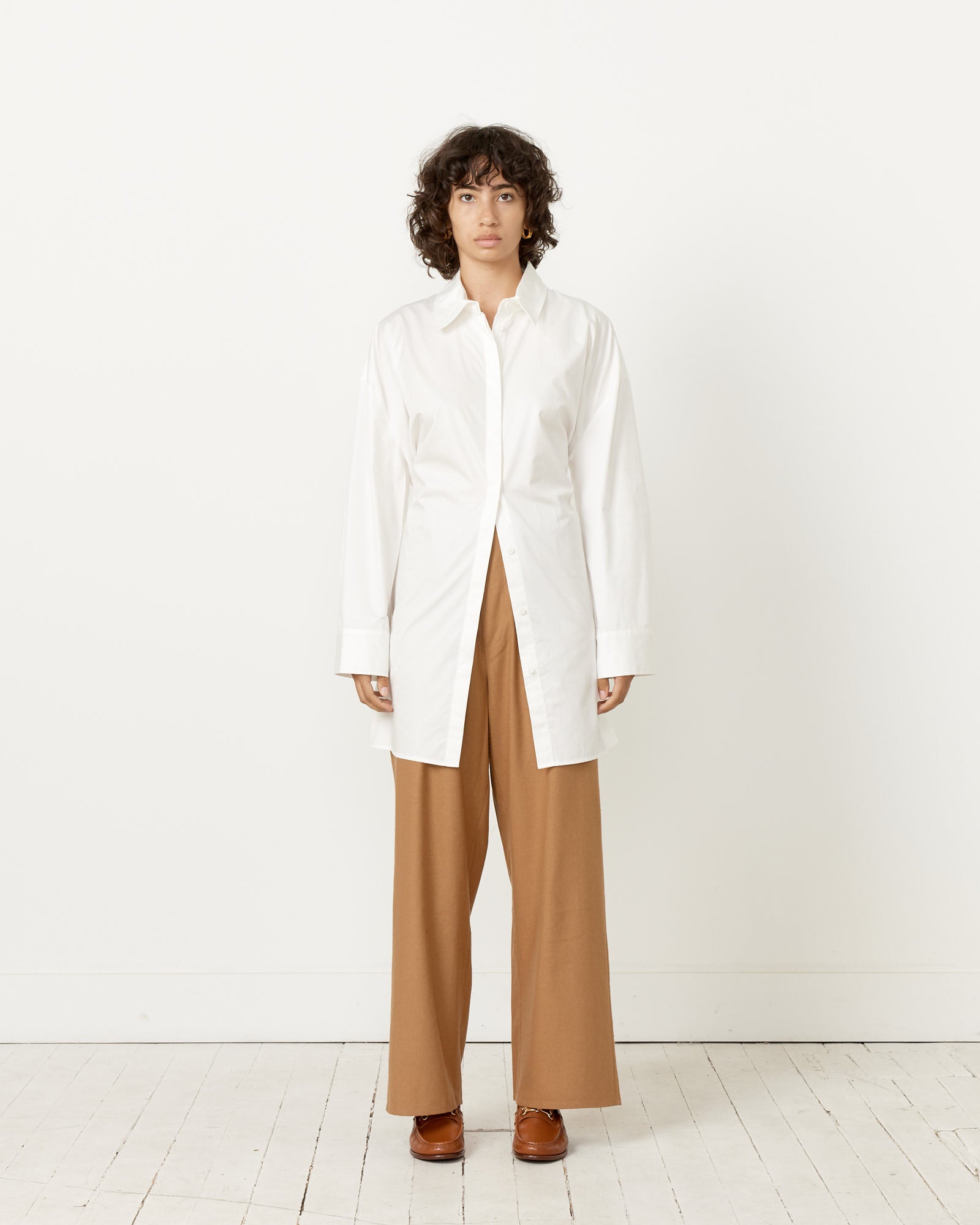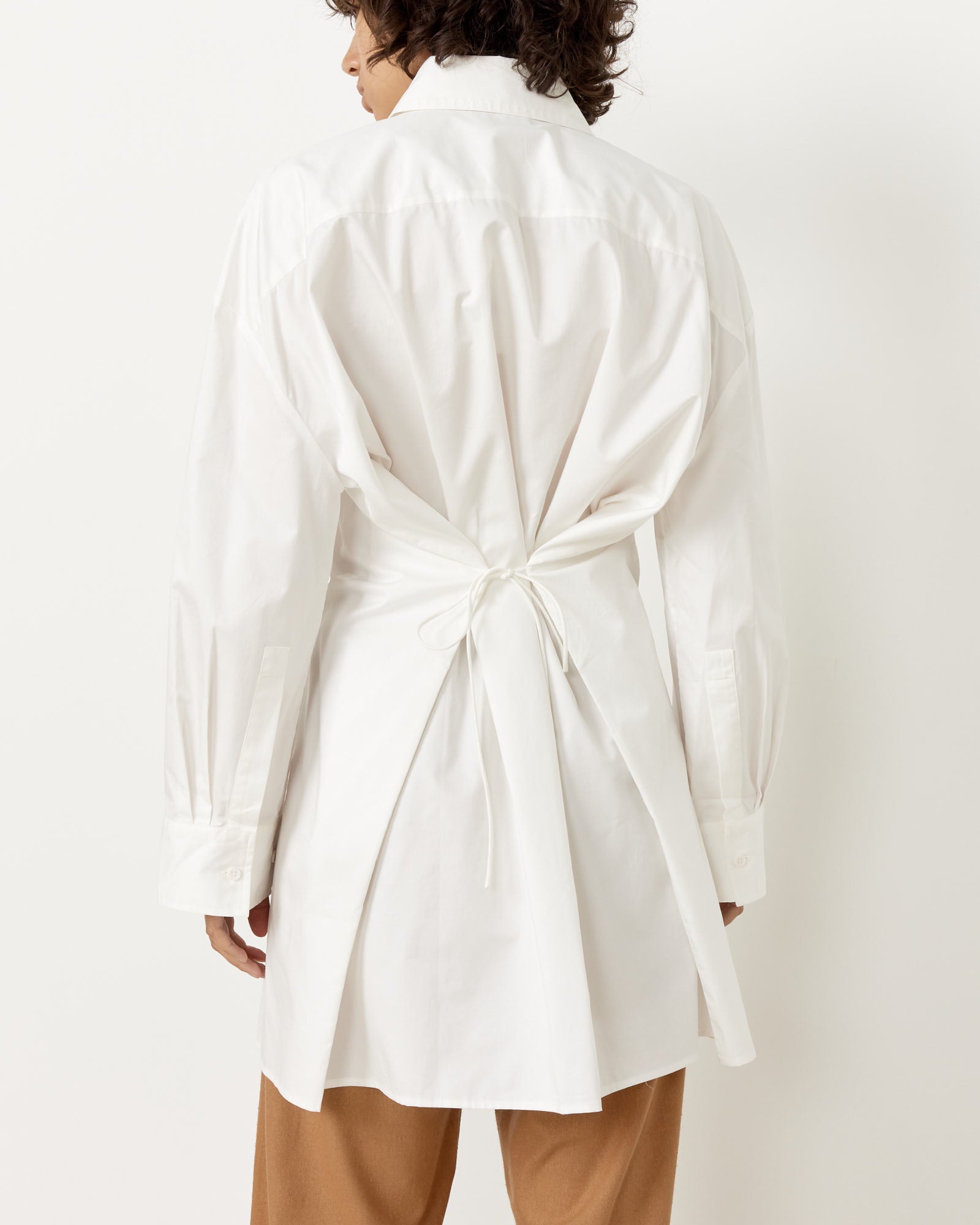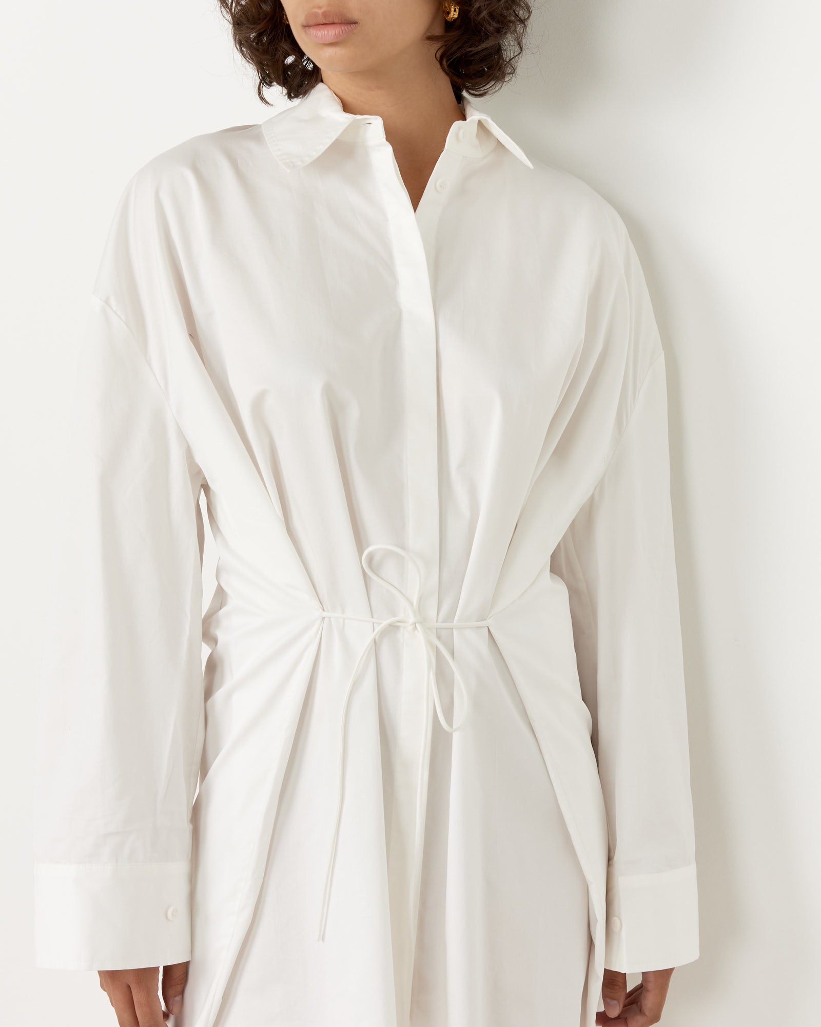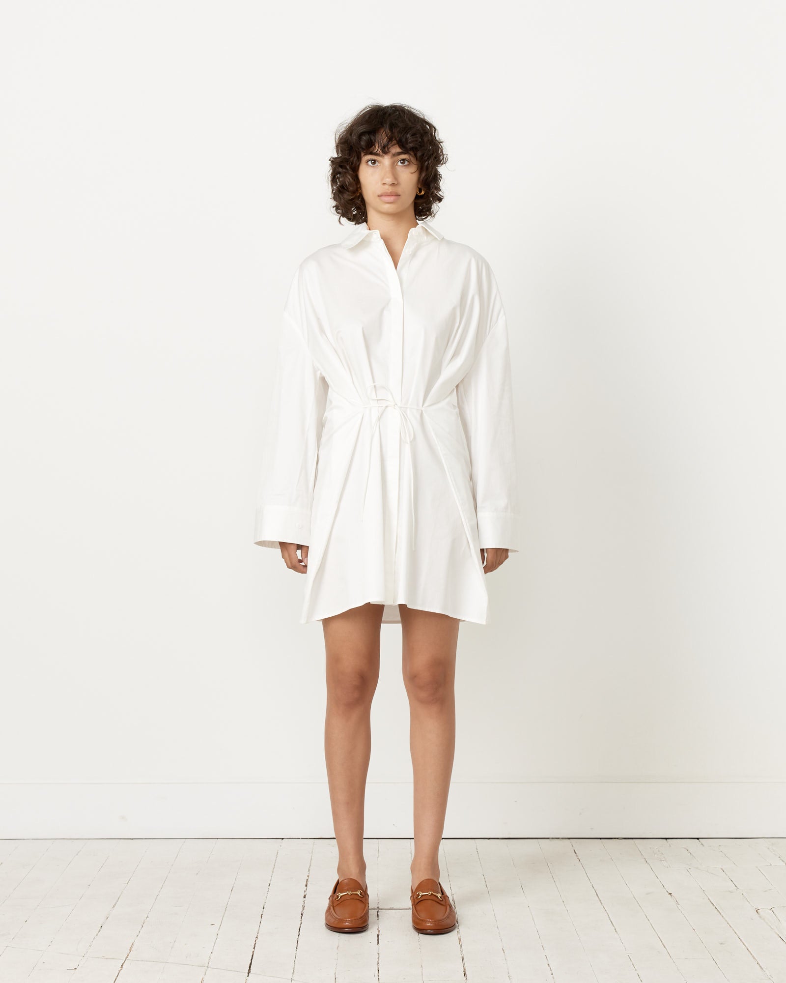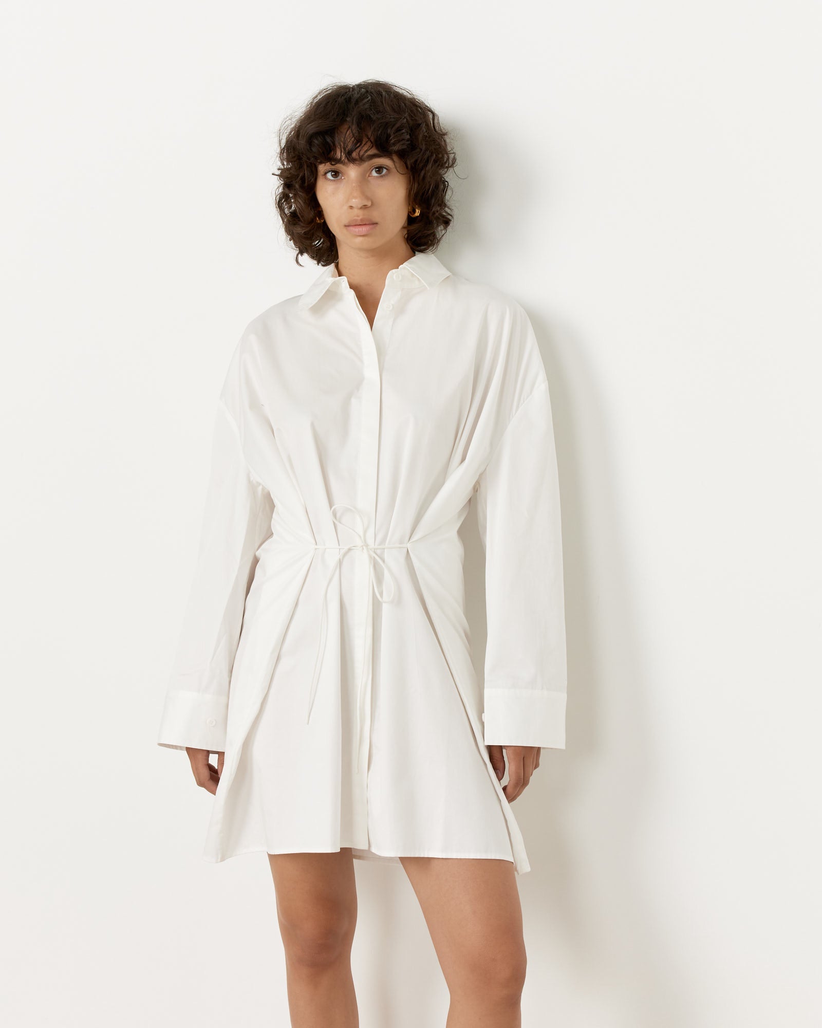 St. Agni's Oversized Shirt Dress is a feminine take on classic men's tailoring with an oversized, mini-length silhouette, a roulet tie belt, classic collar and concealed front placket.