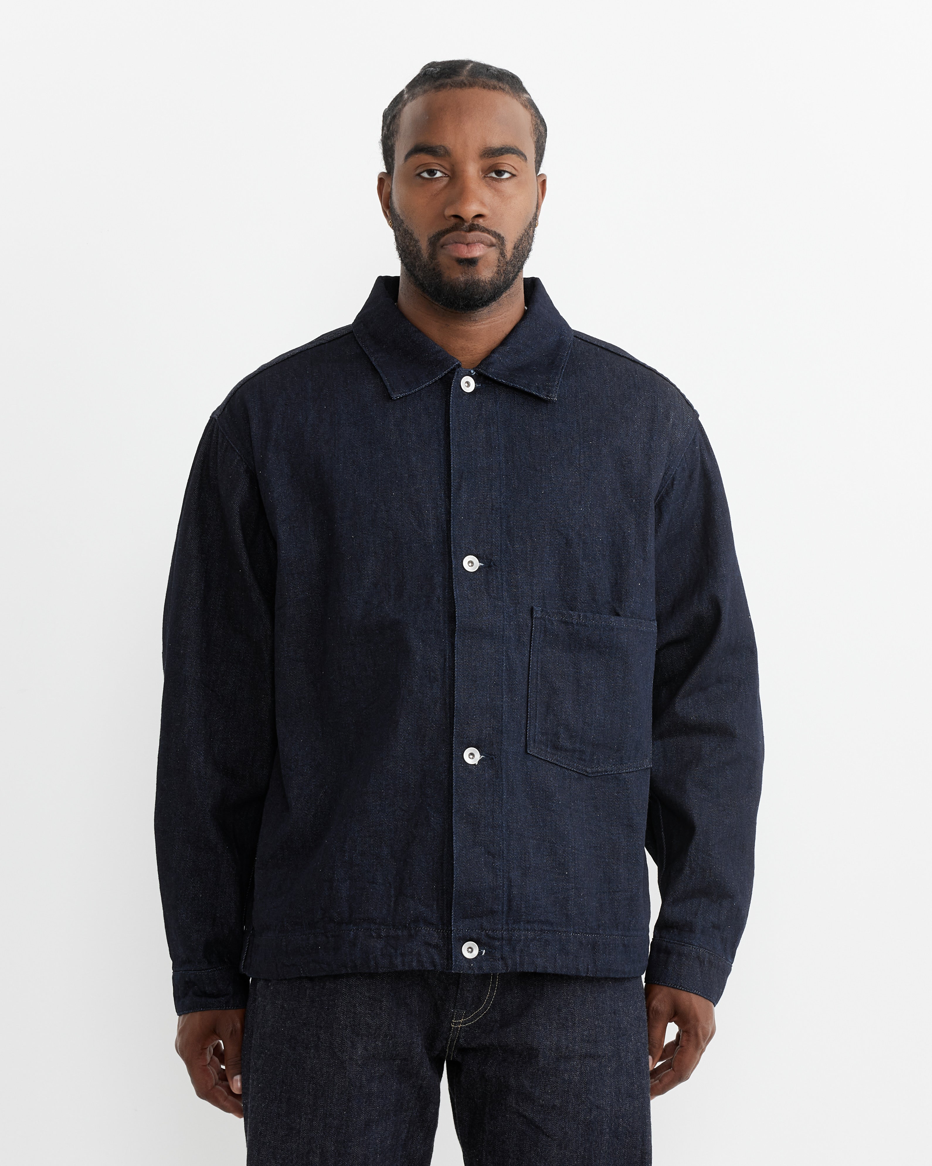 Cut from an original denim fabric produced in Kojima, Okayama - the birthplace of Japanese denim, Still By Hand's lightweight 12oz Denim Jacket modernizes the wardrobe staple with a relaxed, boxy silhouette featuring wide armholes for attractive proportions and a comfortable fit.