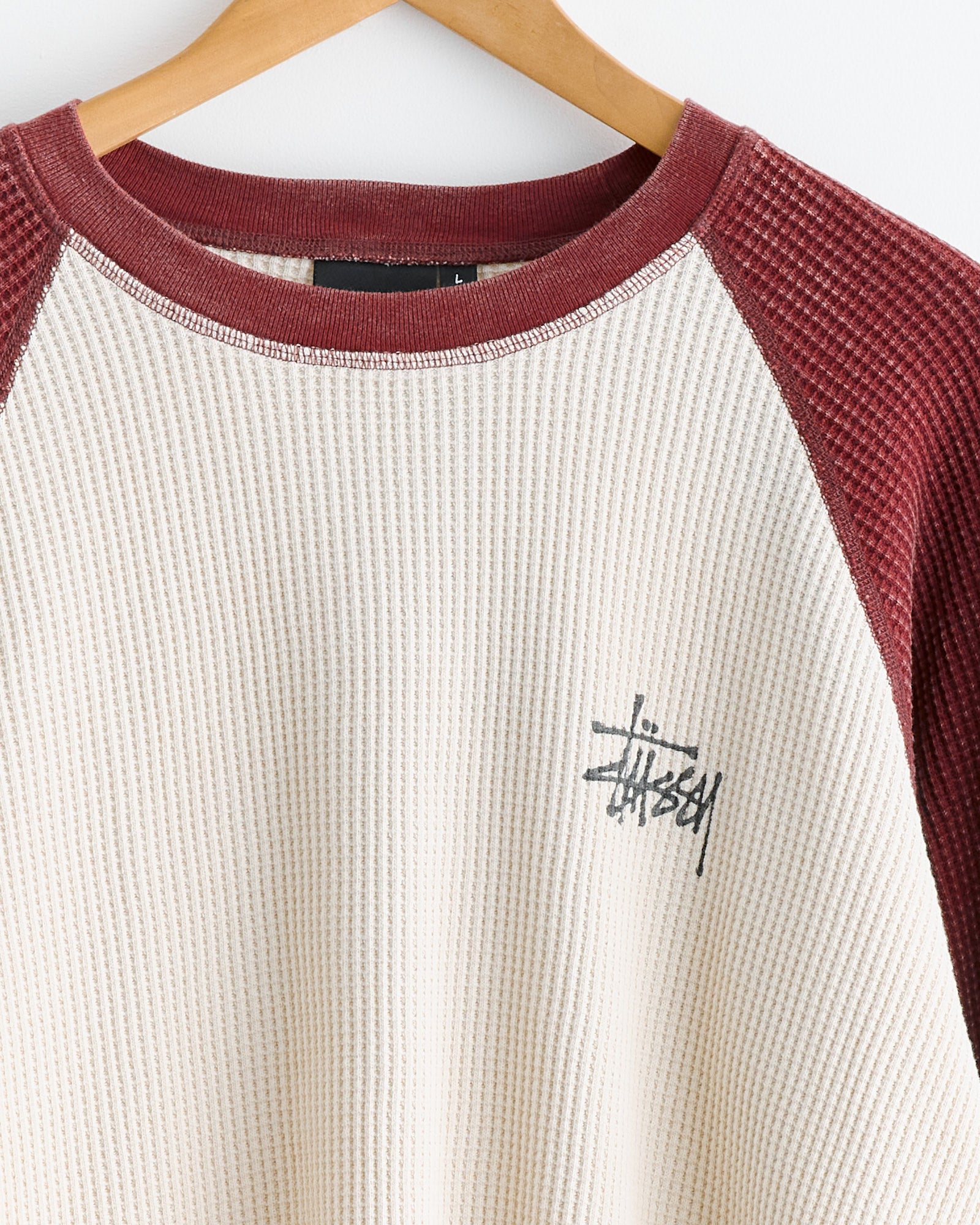 The Stüssy Raglan Thermal 2 Tone is a relaxed fit waffle knit top made from stonewashed, pigment-dyed cotton. Features raglan sleeves, flatlock seams, and water-based logo prints on the front and back. Designed with a soft handfeel and unisex fit. Each piece is uniquely dyed.