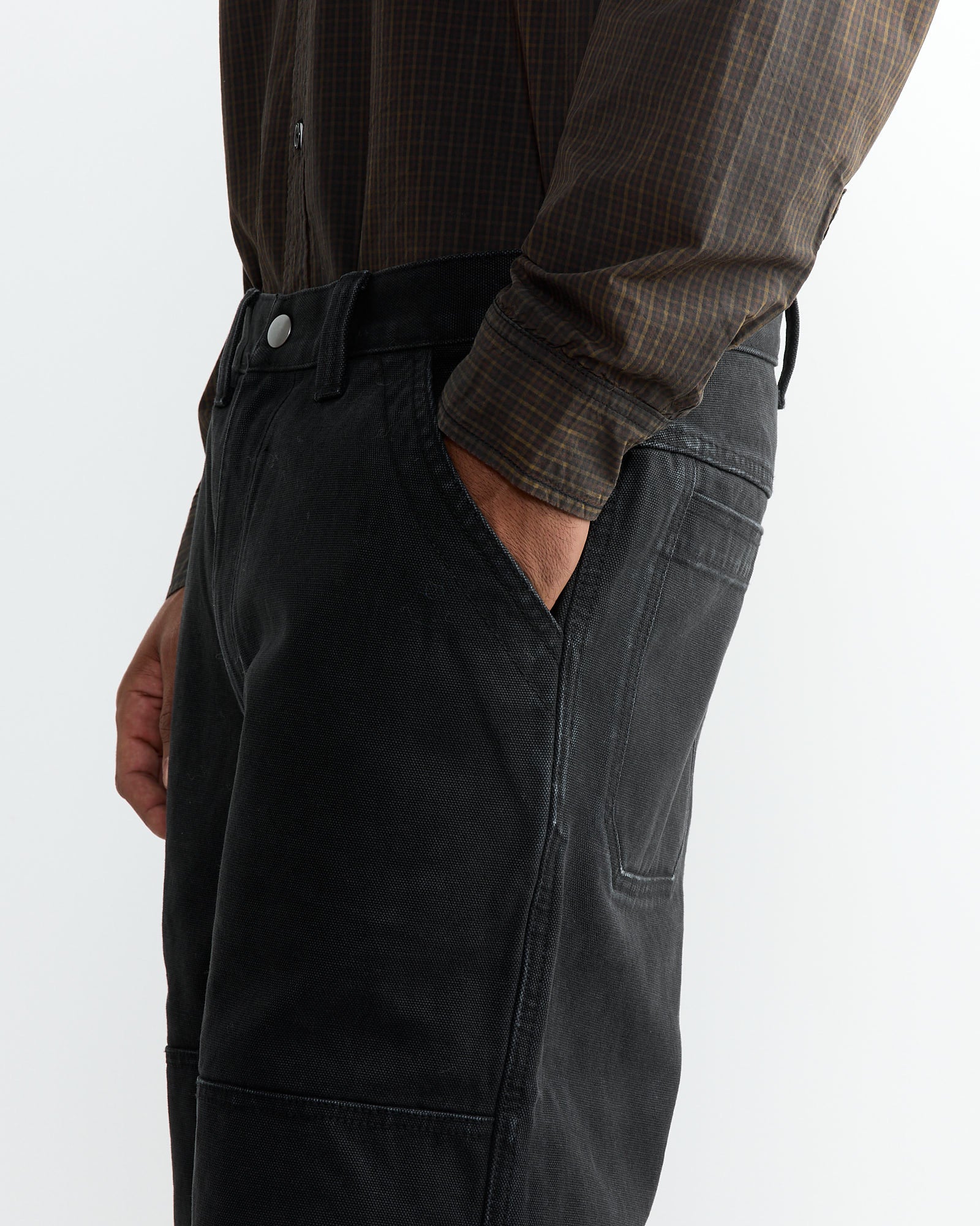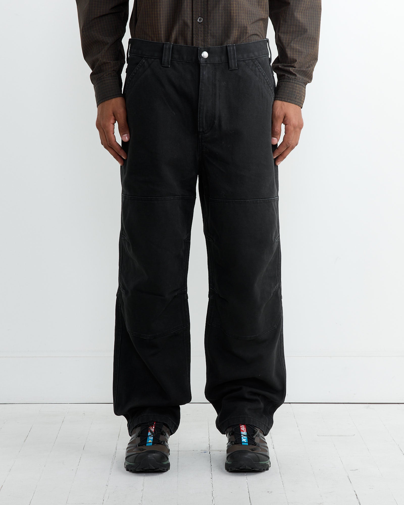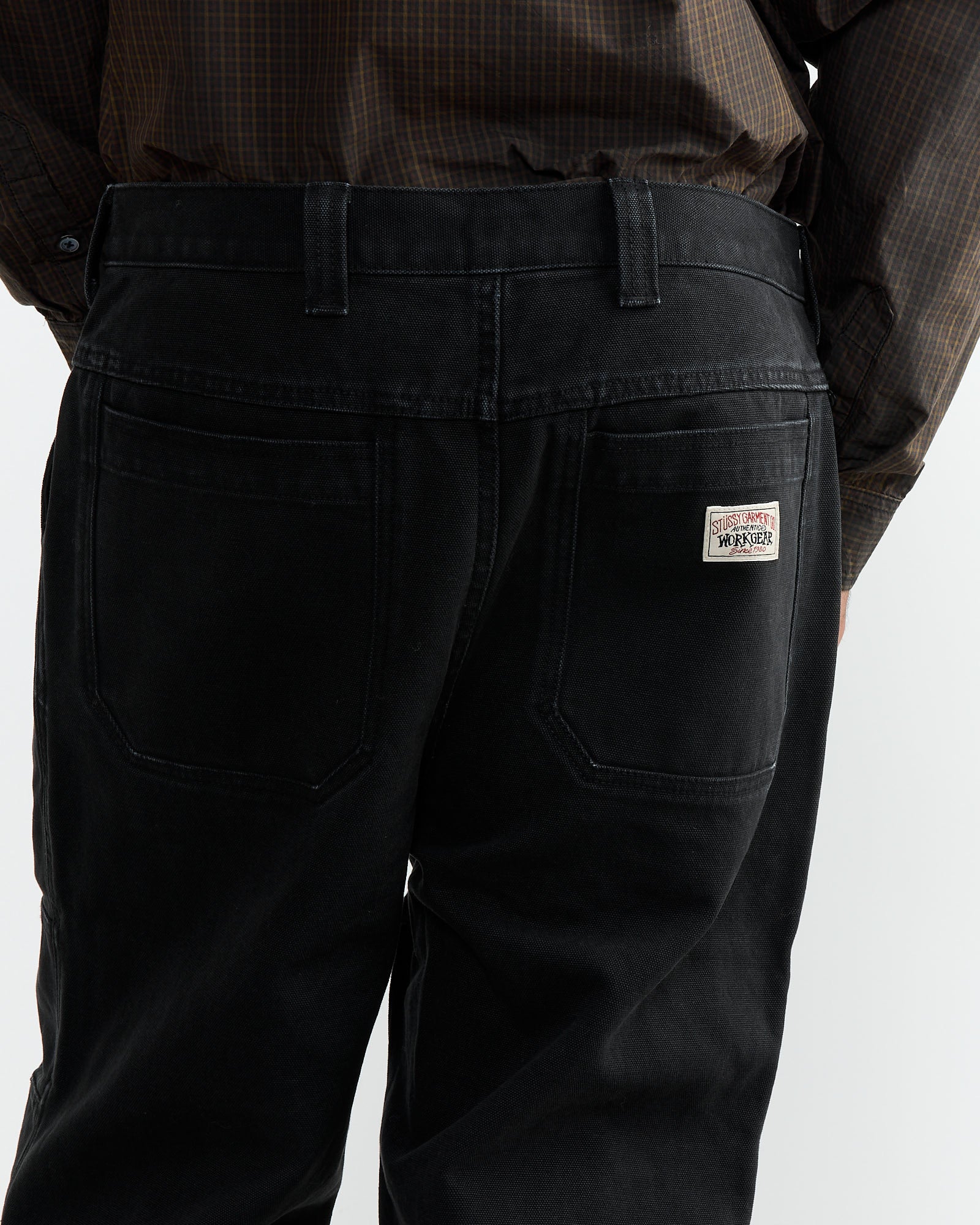The Stüssy Trekking Pant in Black is a versatile addition to any wardrobe, combining functionality with a relaxed fit. Crafted from stonewashed cotton, these pants feature articulated reinforced knee panels for enhanced durability and comfort. Design elements include a zip fly with metal snap closure, tacked belt loops, side pockets, and rear patch pockets.
