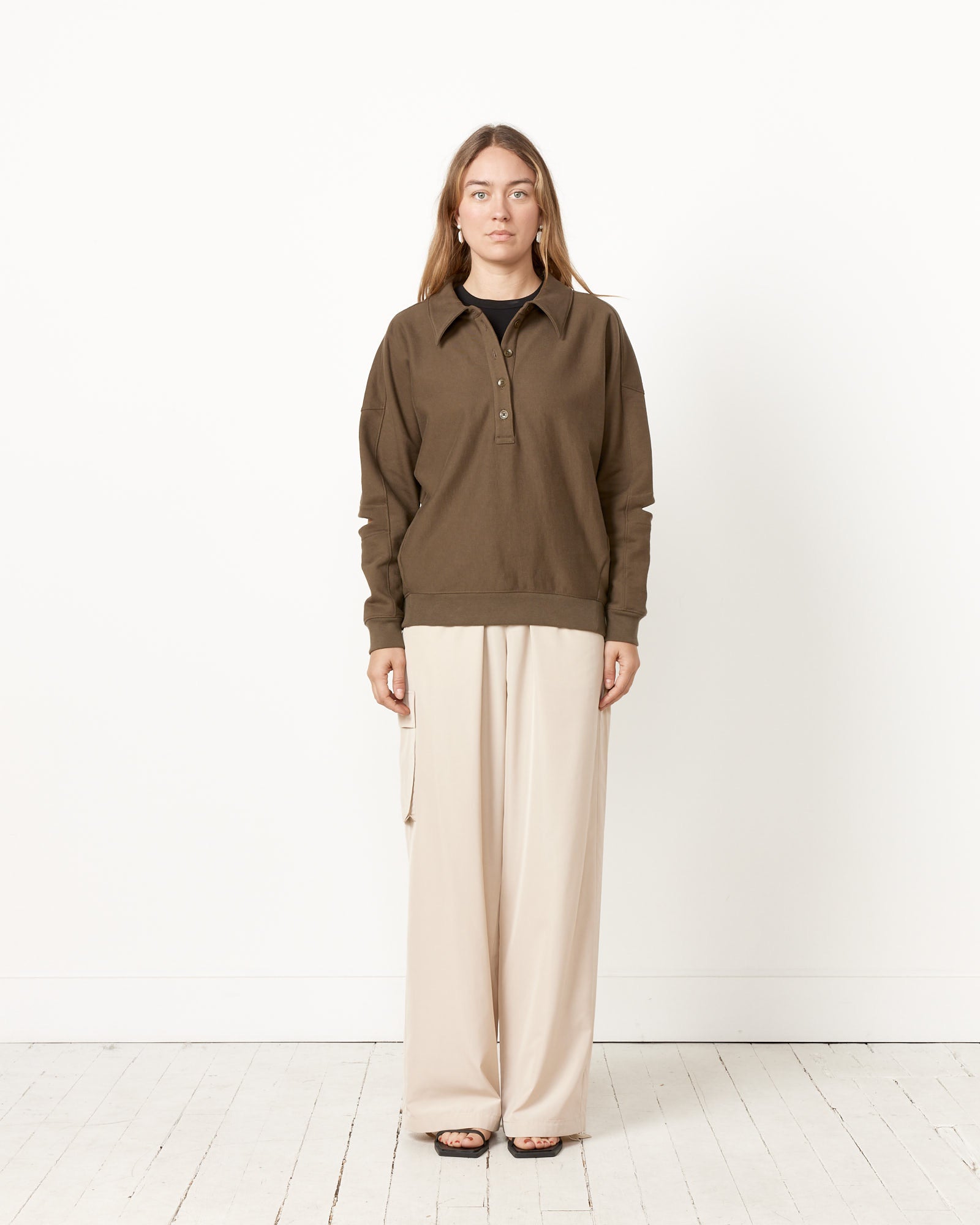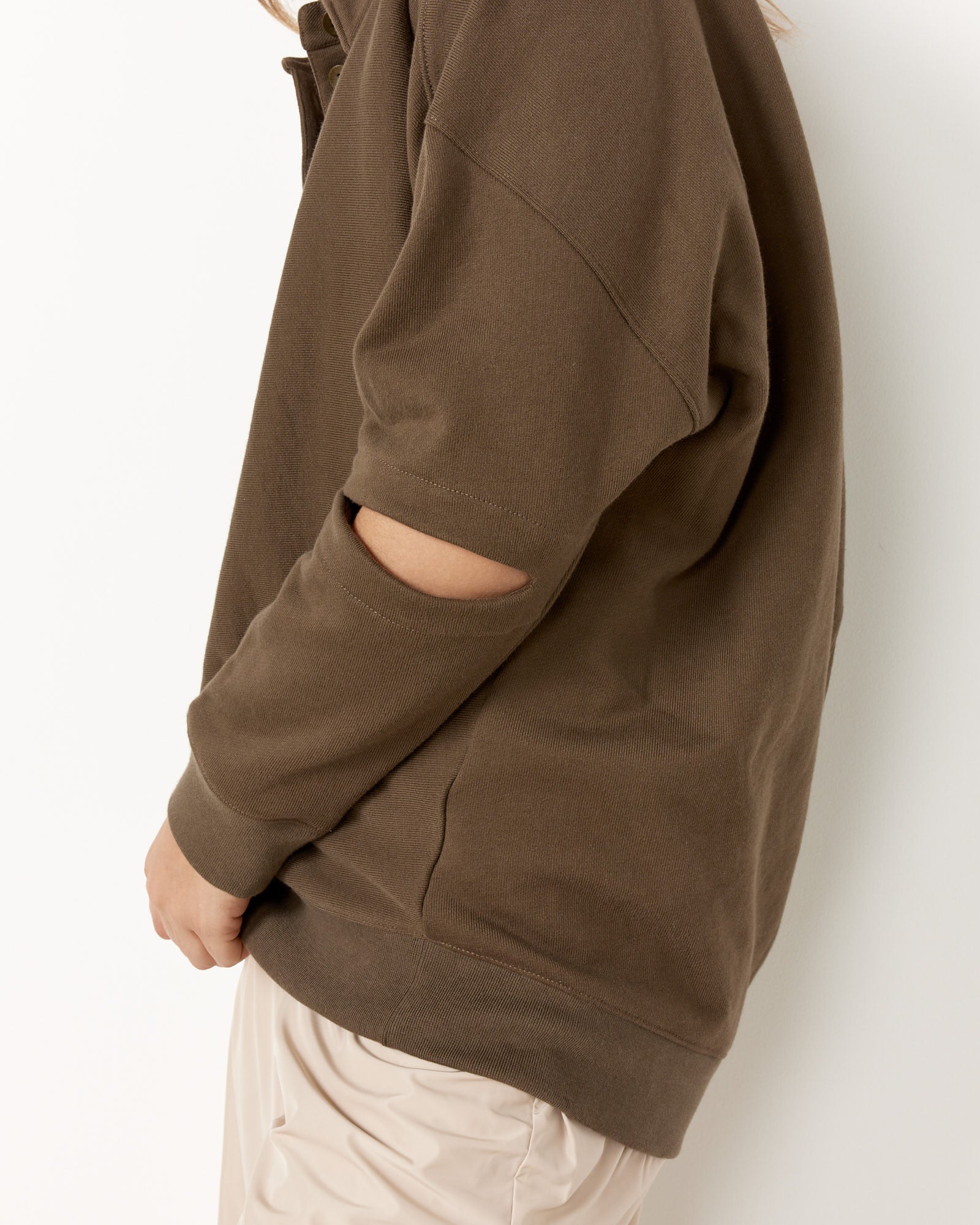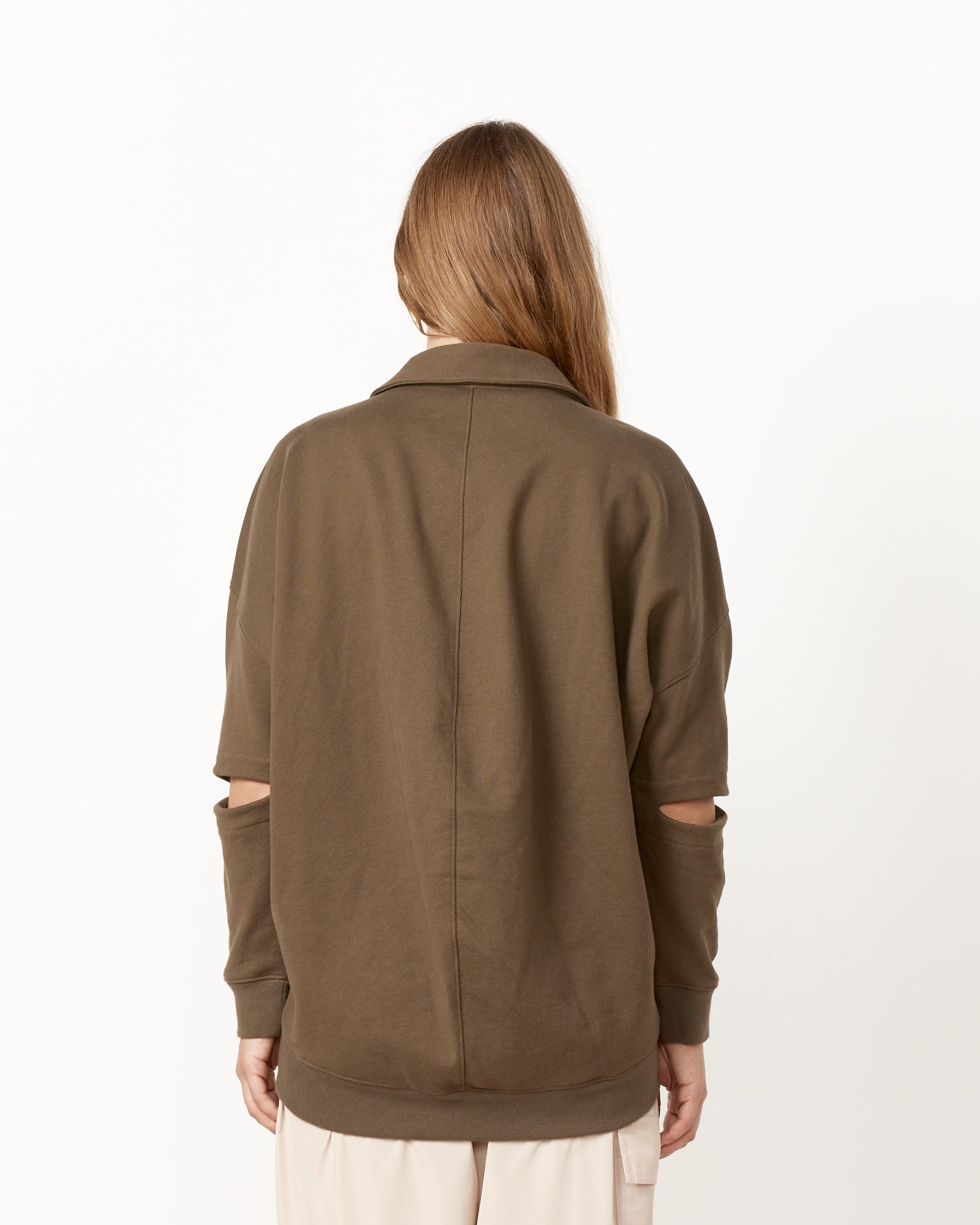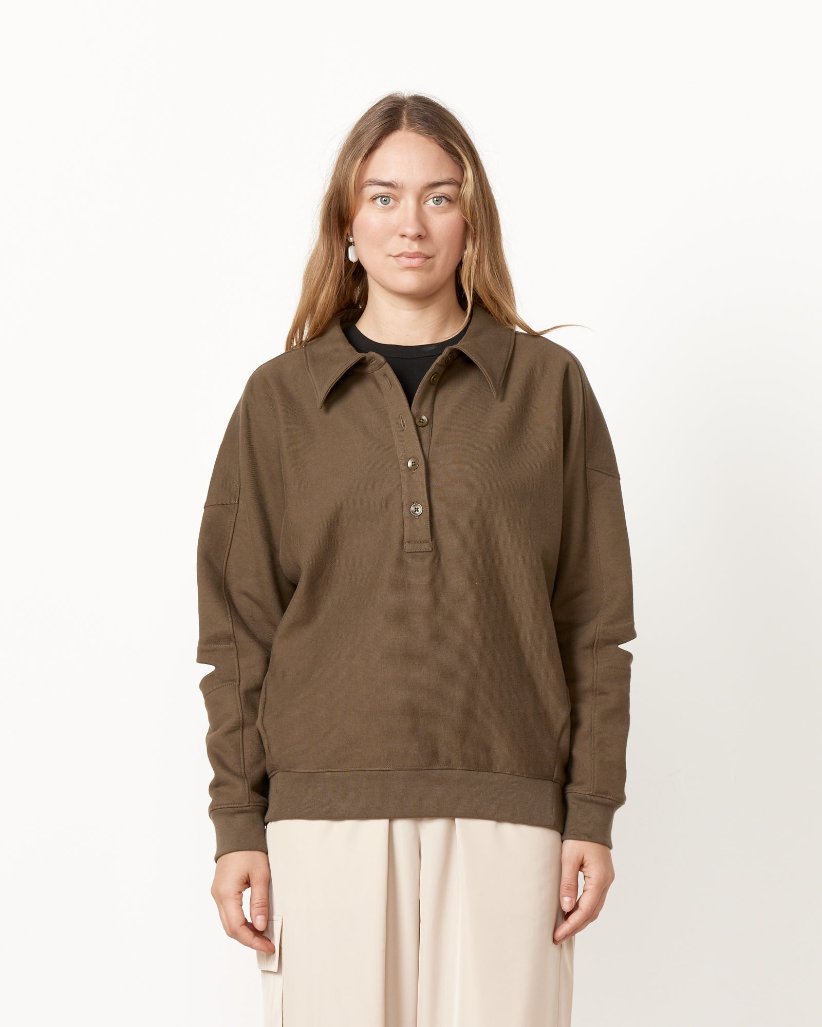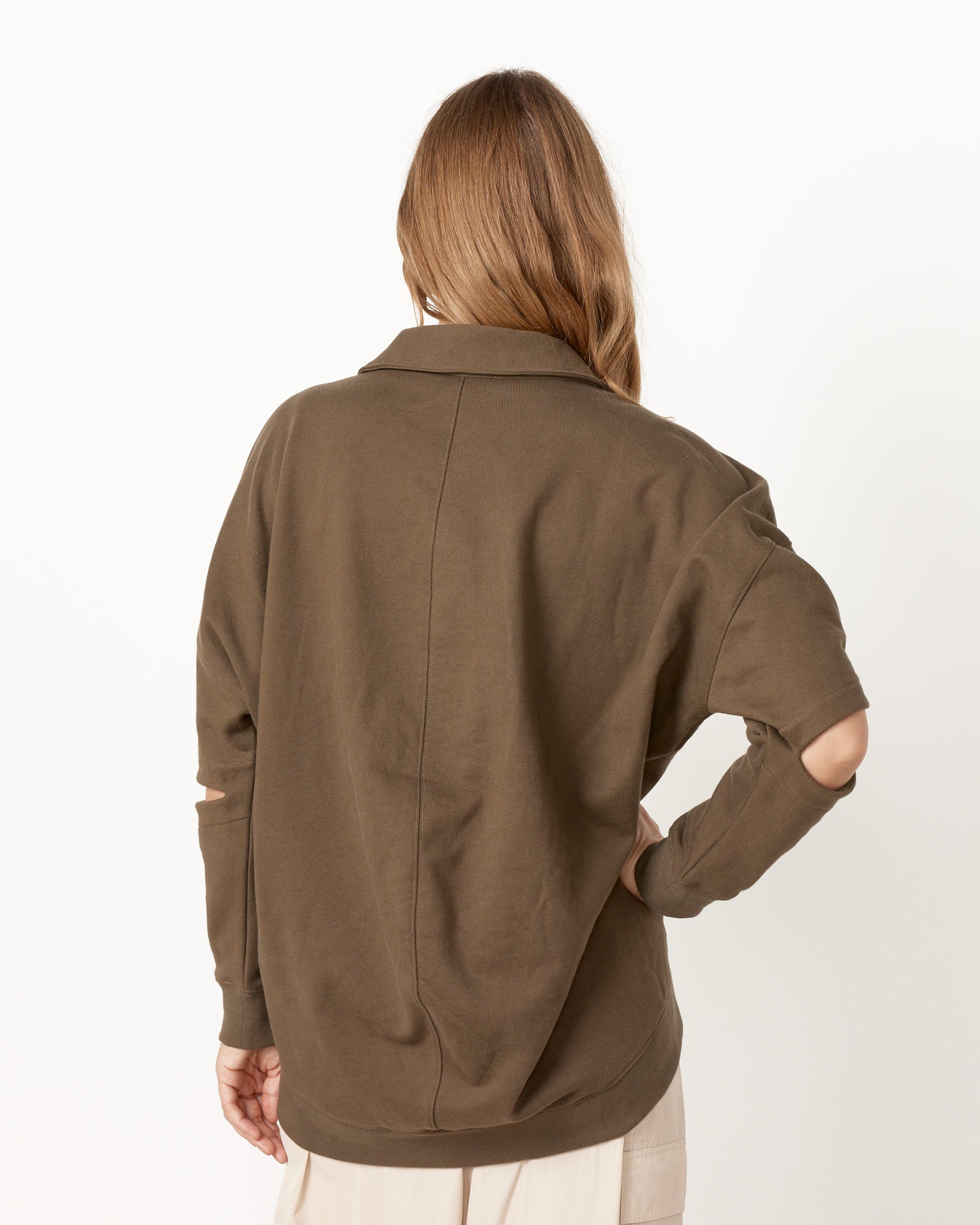 Tibi's Program Polo Sweatshirt is a smart, seasonless year-round layer with slit elbows for a small yet impactful statement, while also allowing for extra breathing room when the days get warmer.