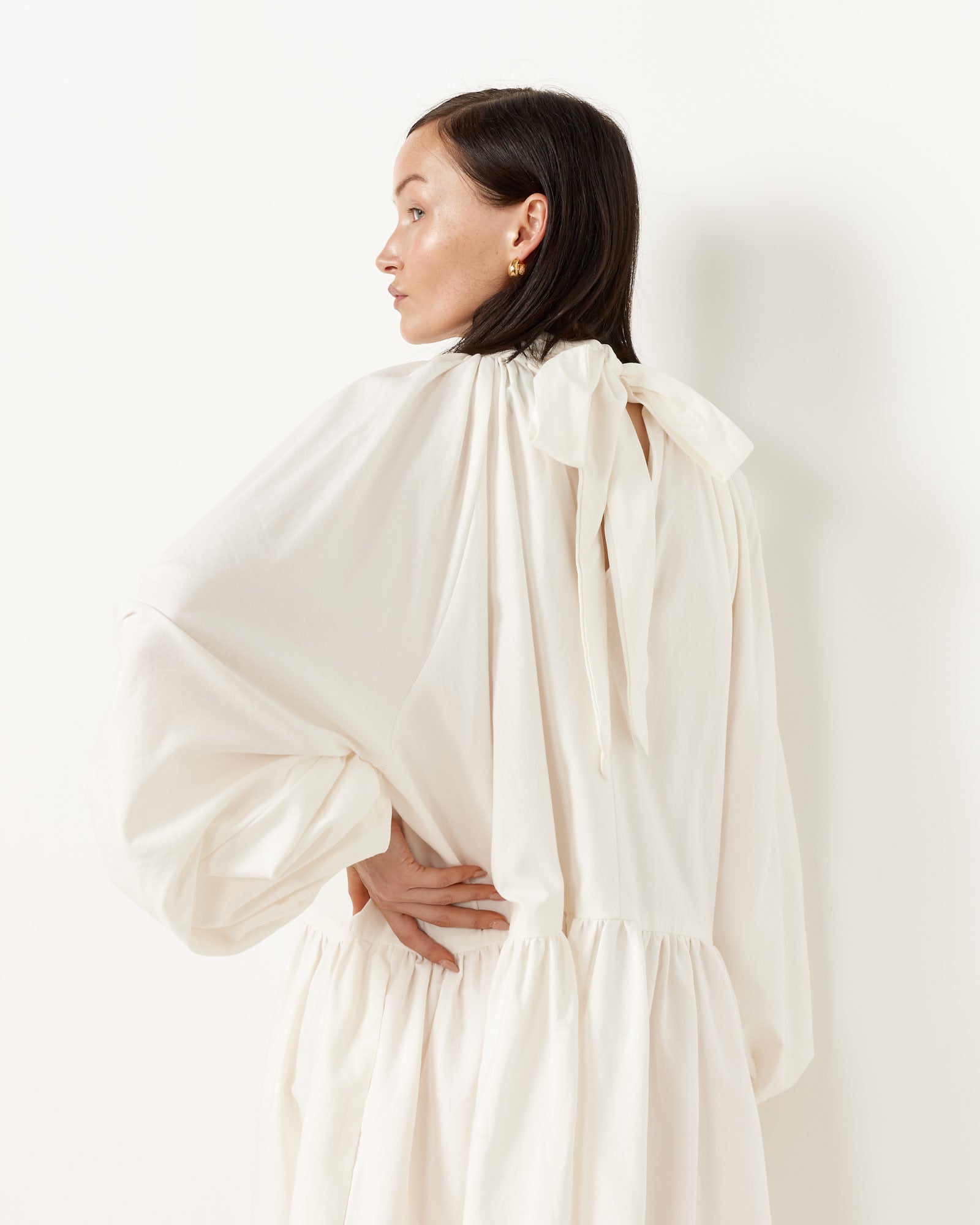 An excellent choice for this season's holiday parties, Toit Volant's Underwoodt Dress is cut with a loose, voluminous silhouette that drapes beautifully thanks to gathering throughout, and features a mock neckline, elasticated cuffs, and long ties at the back.