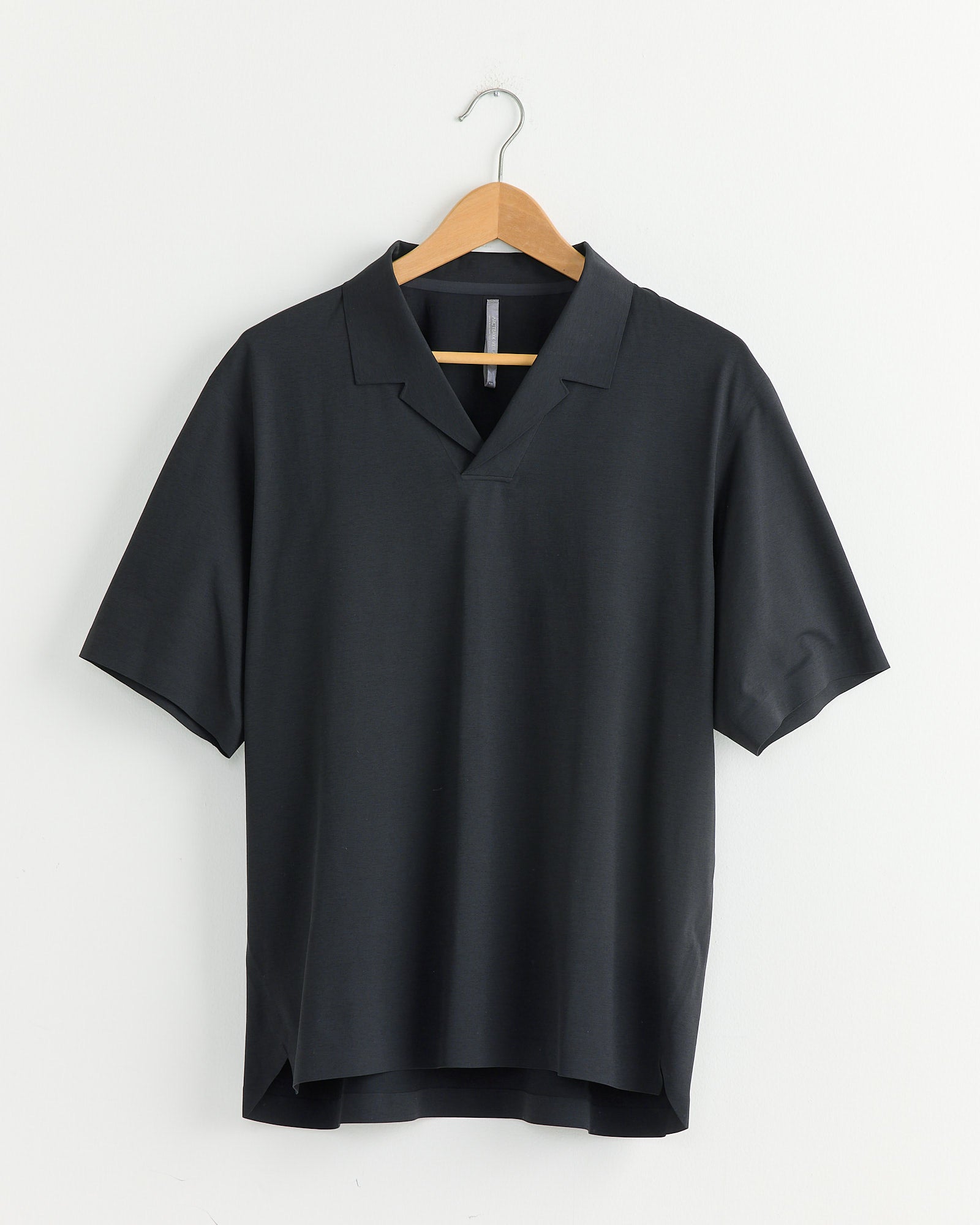 The Veilance Metron S/S Polo Shirt is a lightweight, breathable polo designed for everyday wear. Crafted from recycled polyester jersey, it features ultrasonic welded seams, a bonded collar and hems, and a notched hem for a clean, structured fit. Gusseted underarms provide mobility, while Silvadur™ treatment offers anti-odor properties.